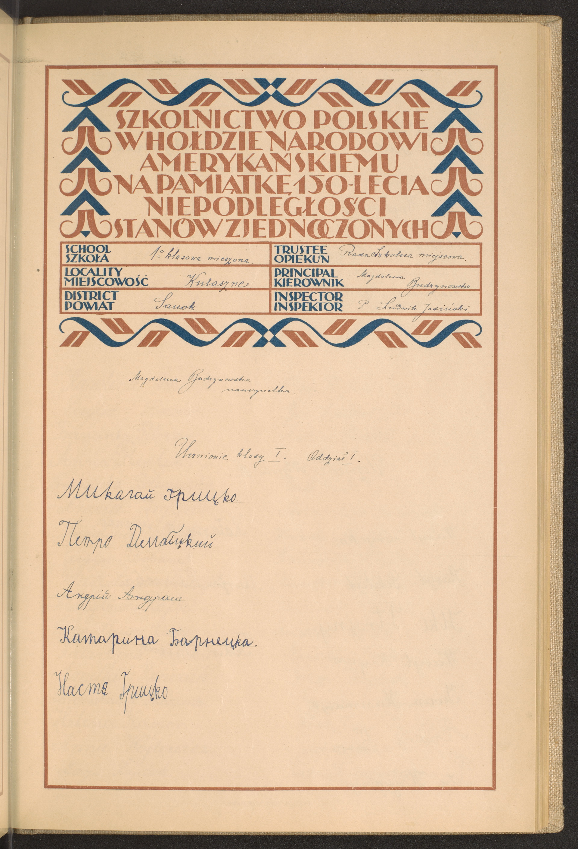 szkoły powszechne i gimnazja; powiaty Sanok-Siedlce
