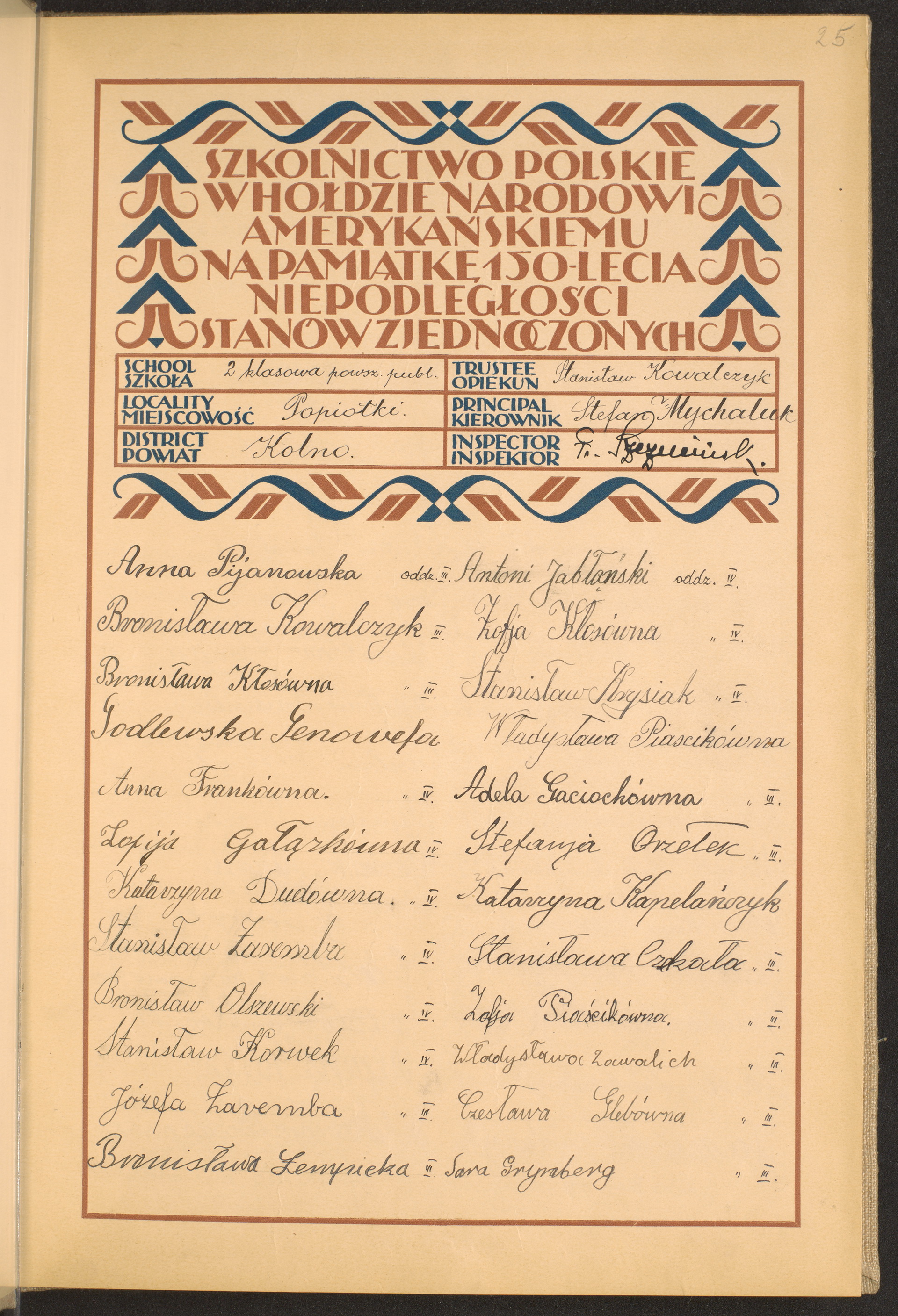szkoły powszechne i gimnazja; powiaty Ostrów Mazowiecka - Oszmiana