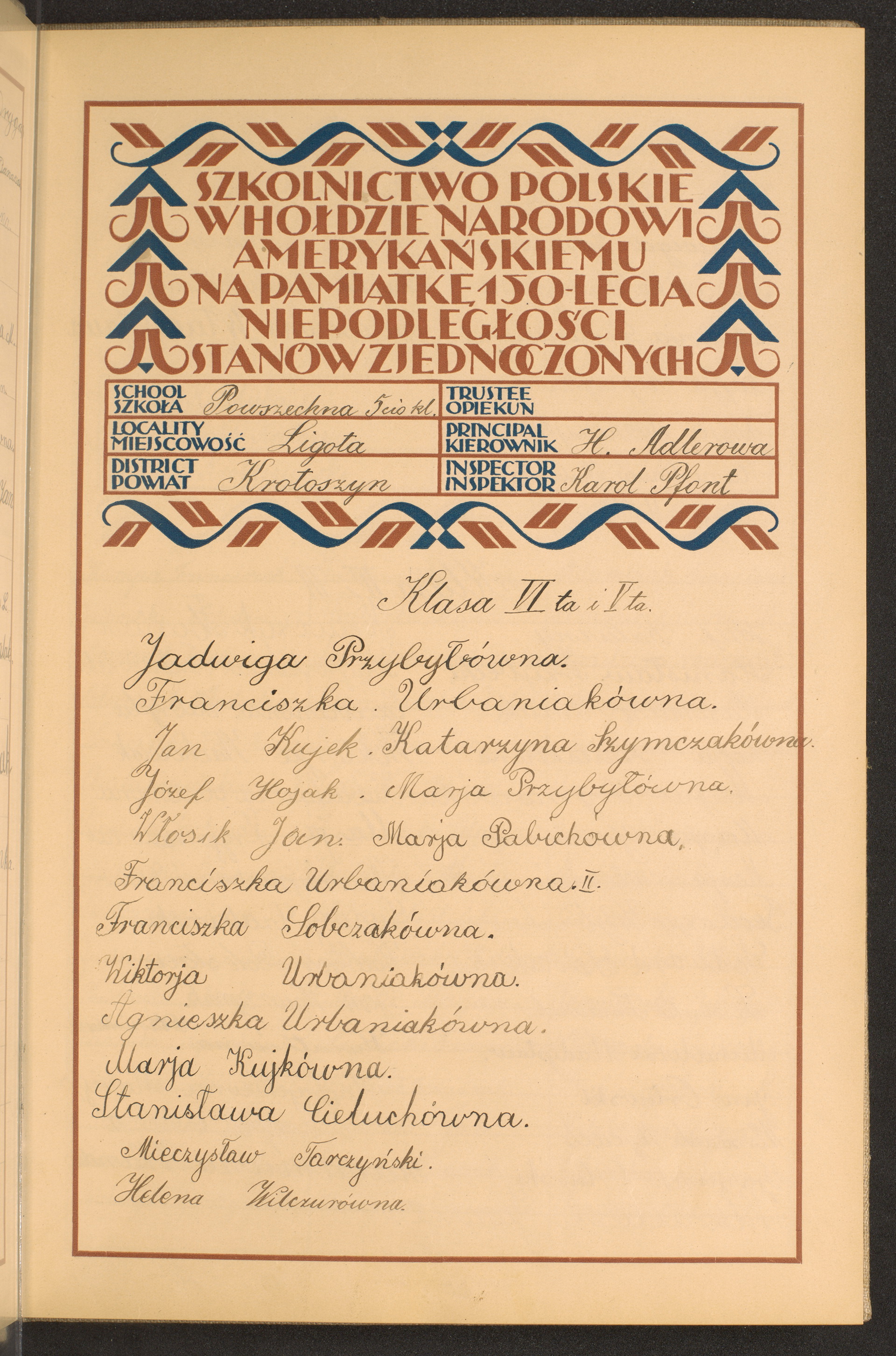 szkoły powszechne i gimnazja; powiaty Krotoszyn-Lipno
