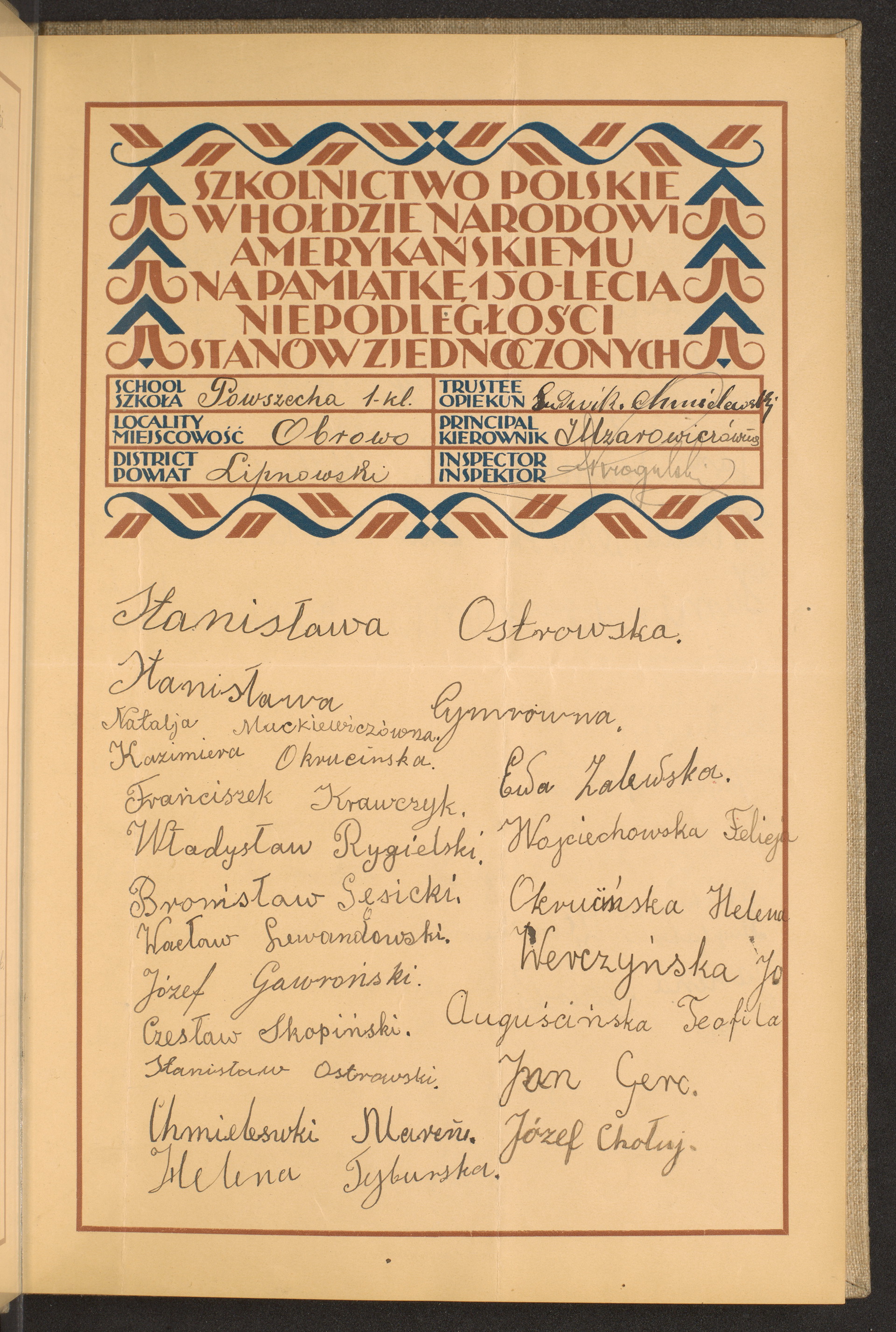 szkoły powszechne i gimnazja; powiaty Lipno-Lubartów