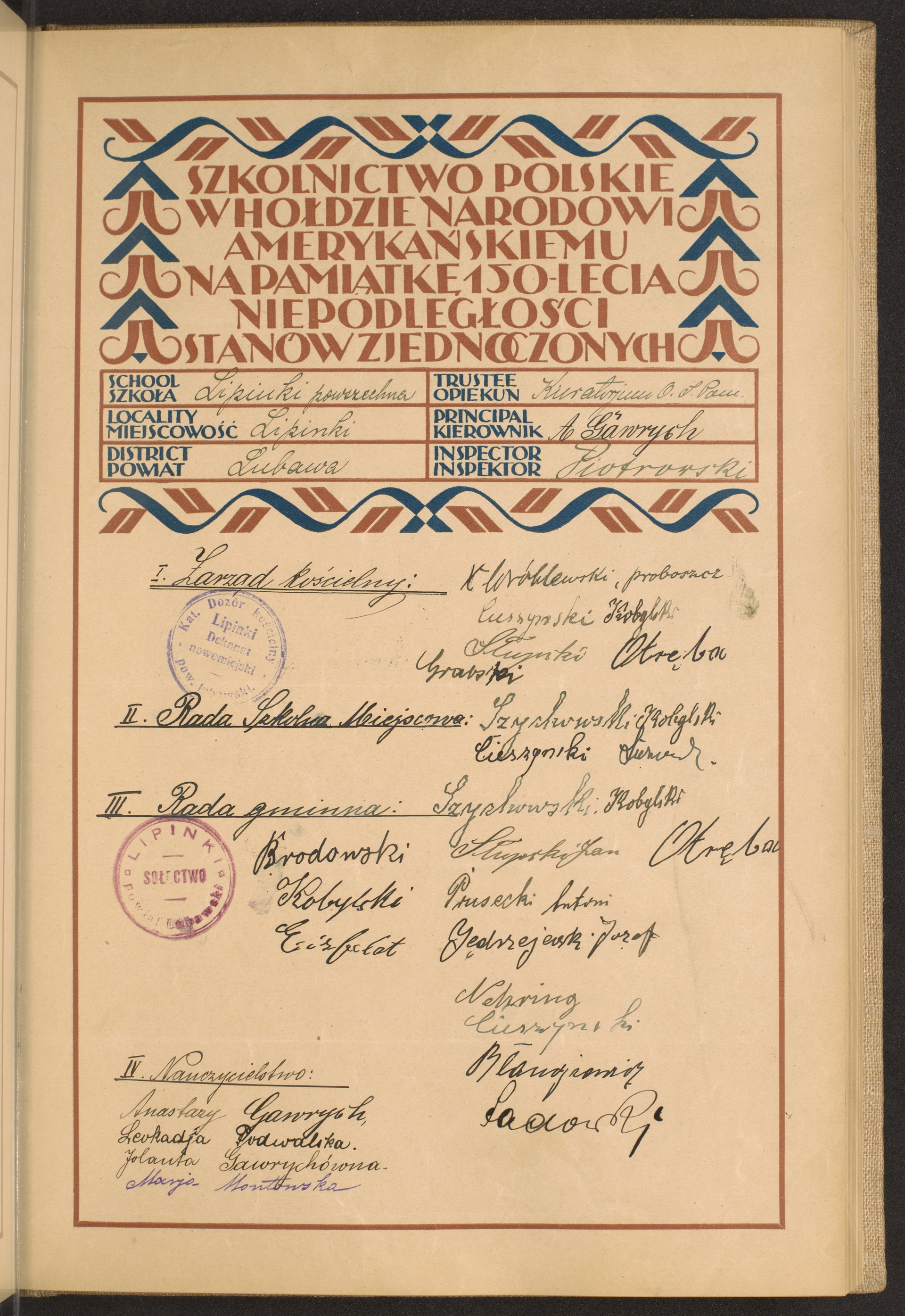 szkoły powszechne i gimnazja; powiaty Lubawa-Lubliniec