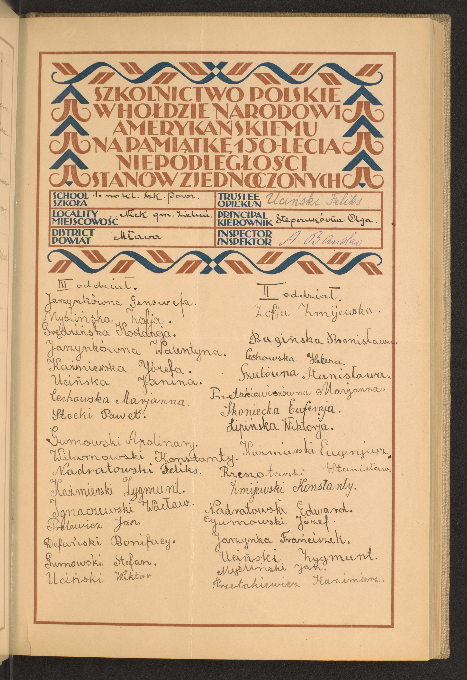 szkoły powszechne i gimnazja; powiaty Mława-Nadwórna