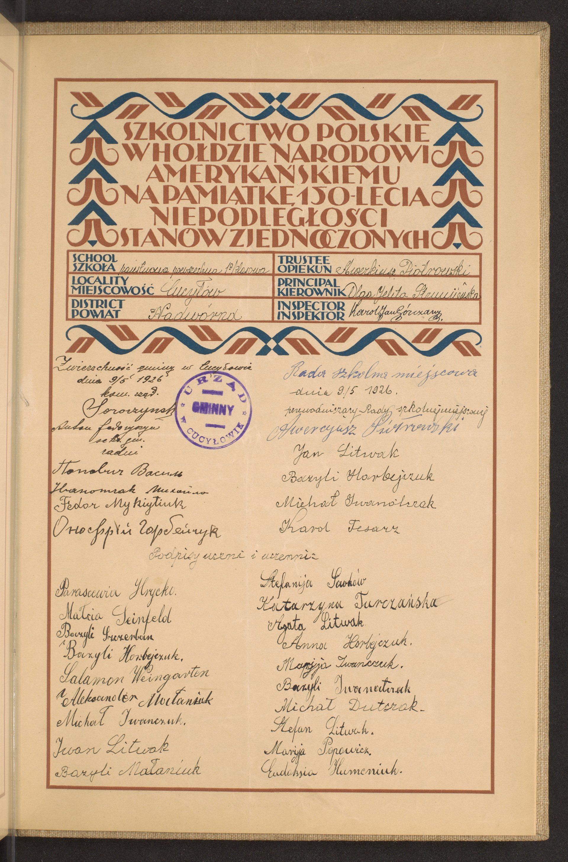 szkoły powszechne i gimnazja; powiaty Mława-Nadwórna
