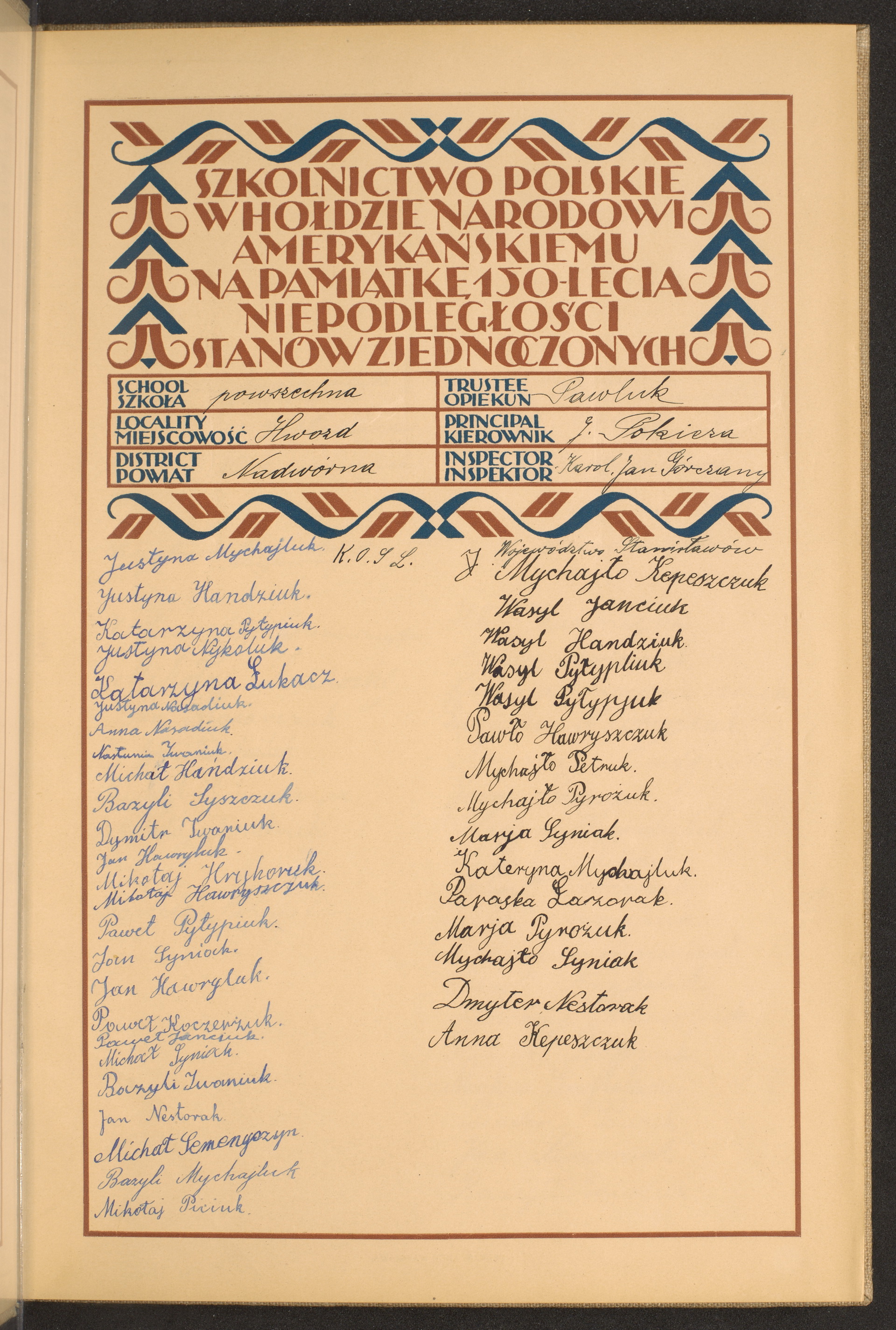 szkoły powszechne i gimnazja; powiaty Nadwórna-Nieszawa