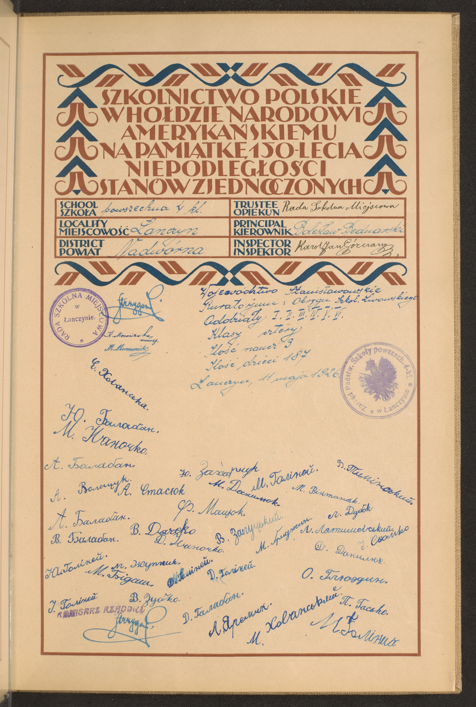 szkoły powszechne i gimnazja; powiaty Nadwórna-Nieszawa