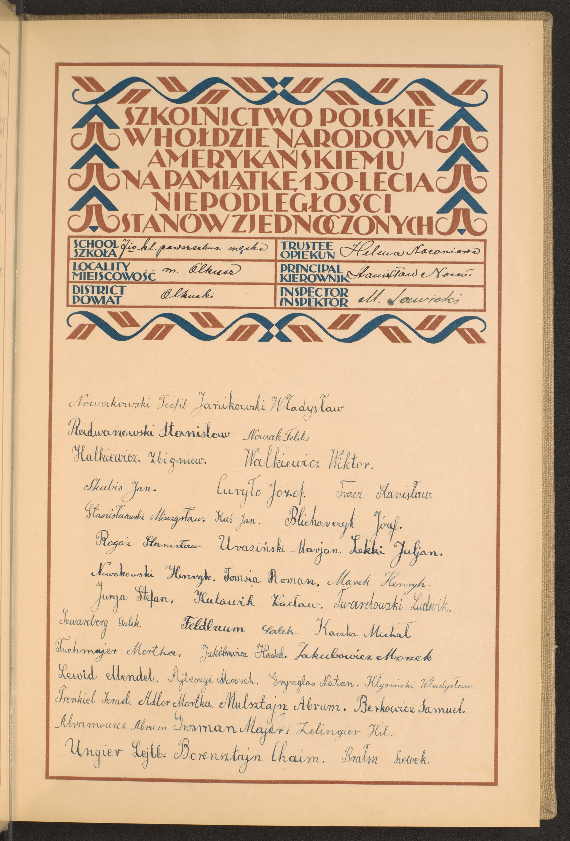 szkoły powszechne i gimnazja; powiaty Olkusz-Ostrołęka