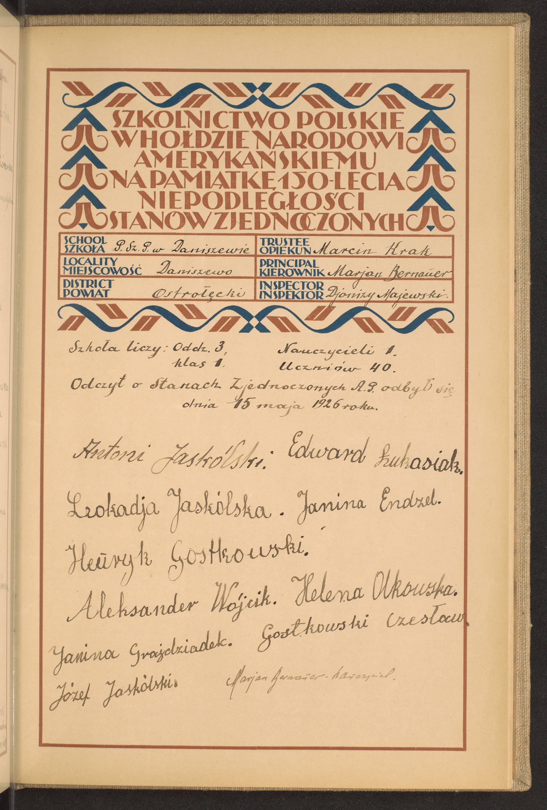 szkoły powszechne i gimnazja; powiaty Olkusz-Ostrołęka