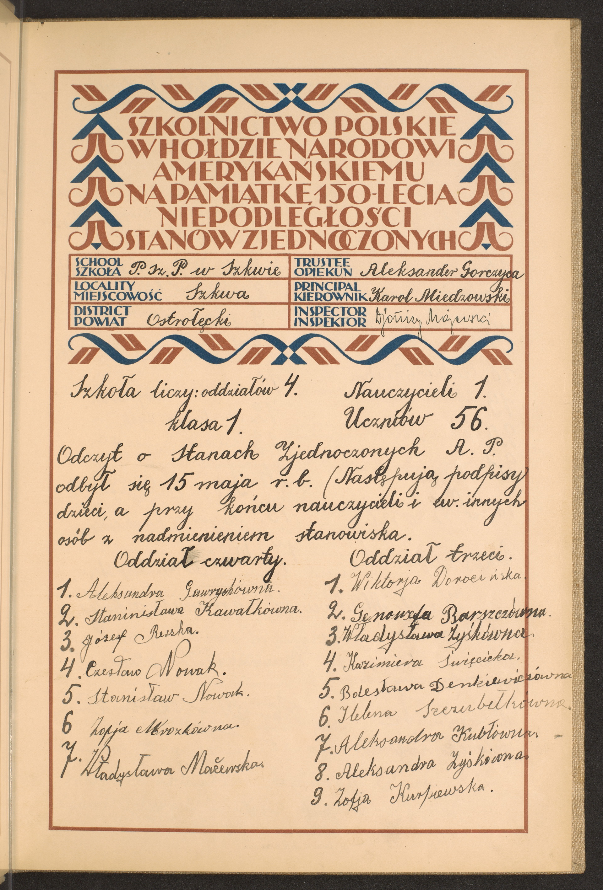 szkoły powszechne i gimnazja; powiaty Ostrołęka - Ostrów