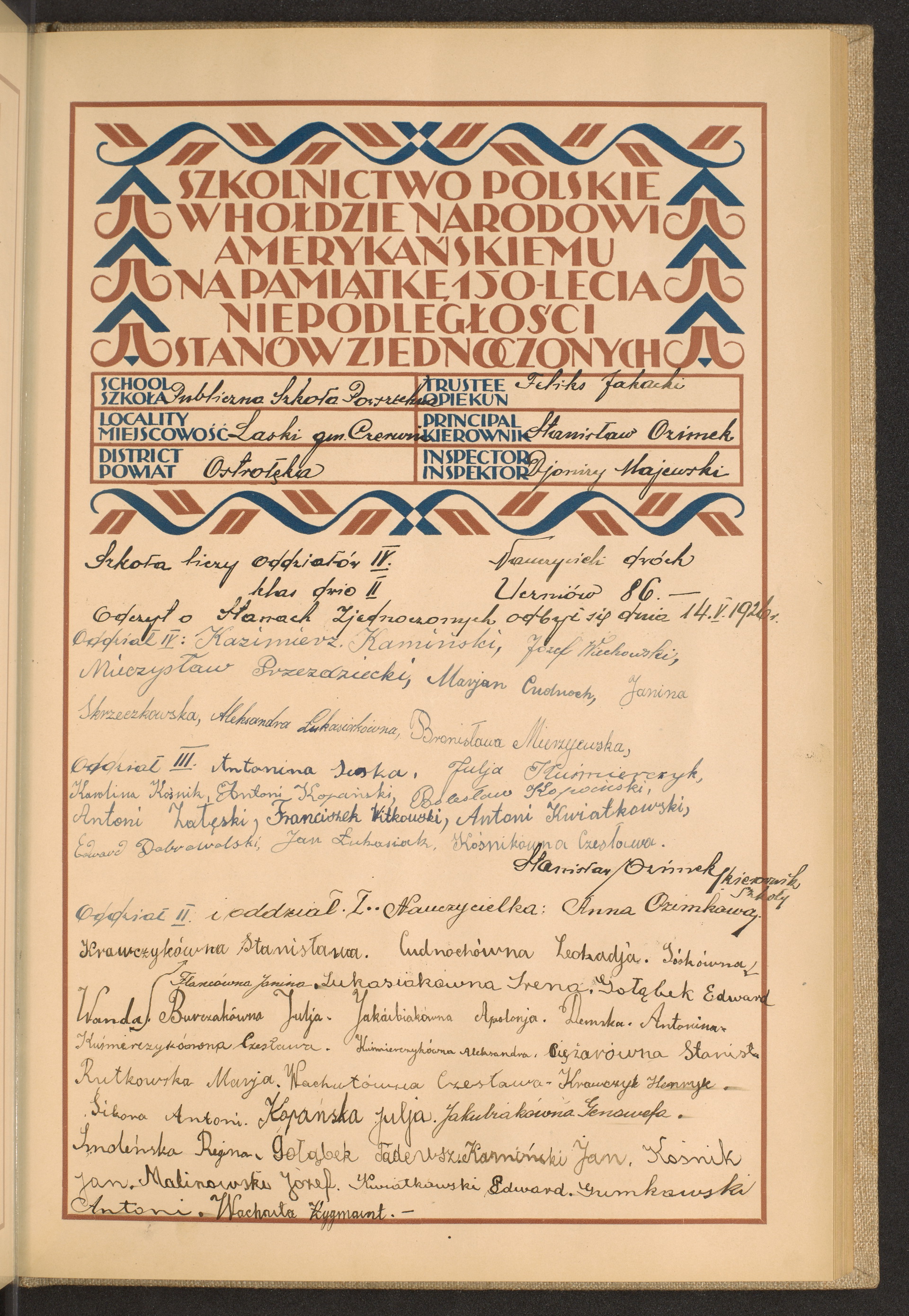 szkoły powszechne i gimnazja; powiaty Ostrołęka - Ostrów