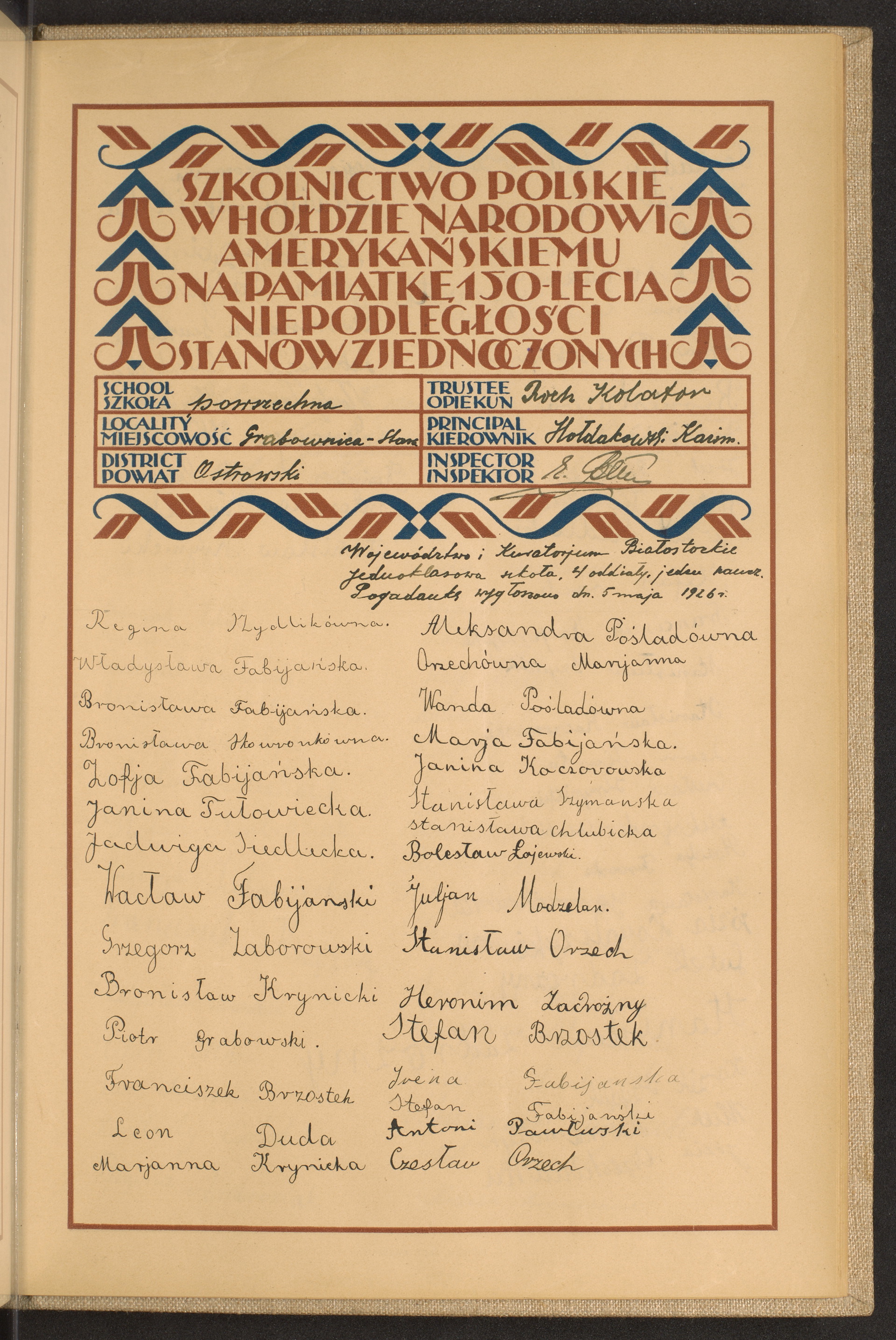 szkoły powszechne i gimnazja; powiaty Ostrołęka - Ostrów