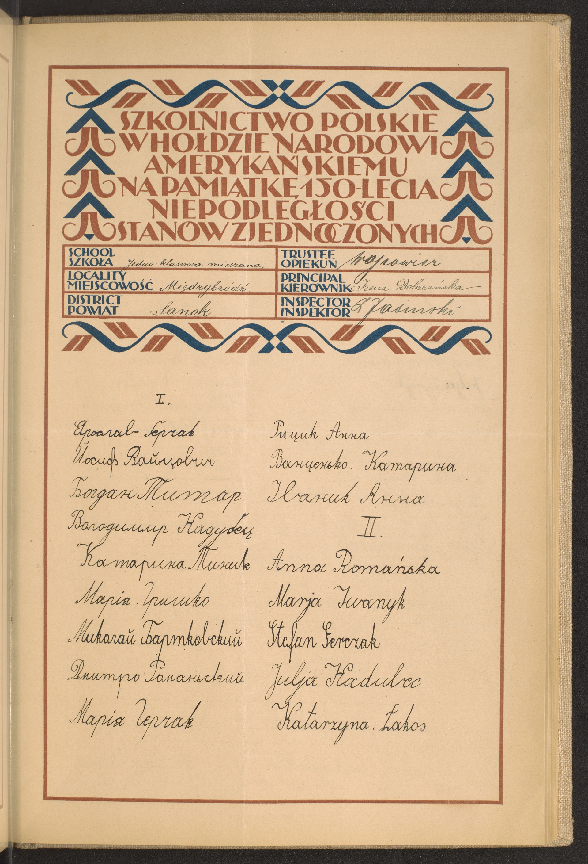 szkoły powszechne i gimnazja; powiaty Sanok-Siedlce