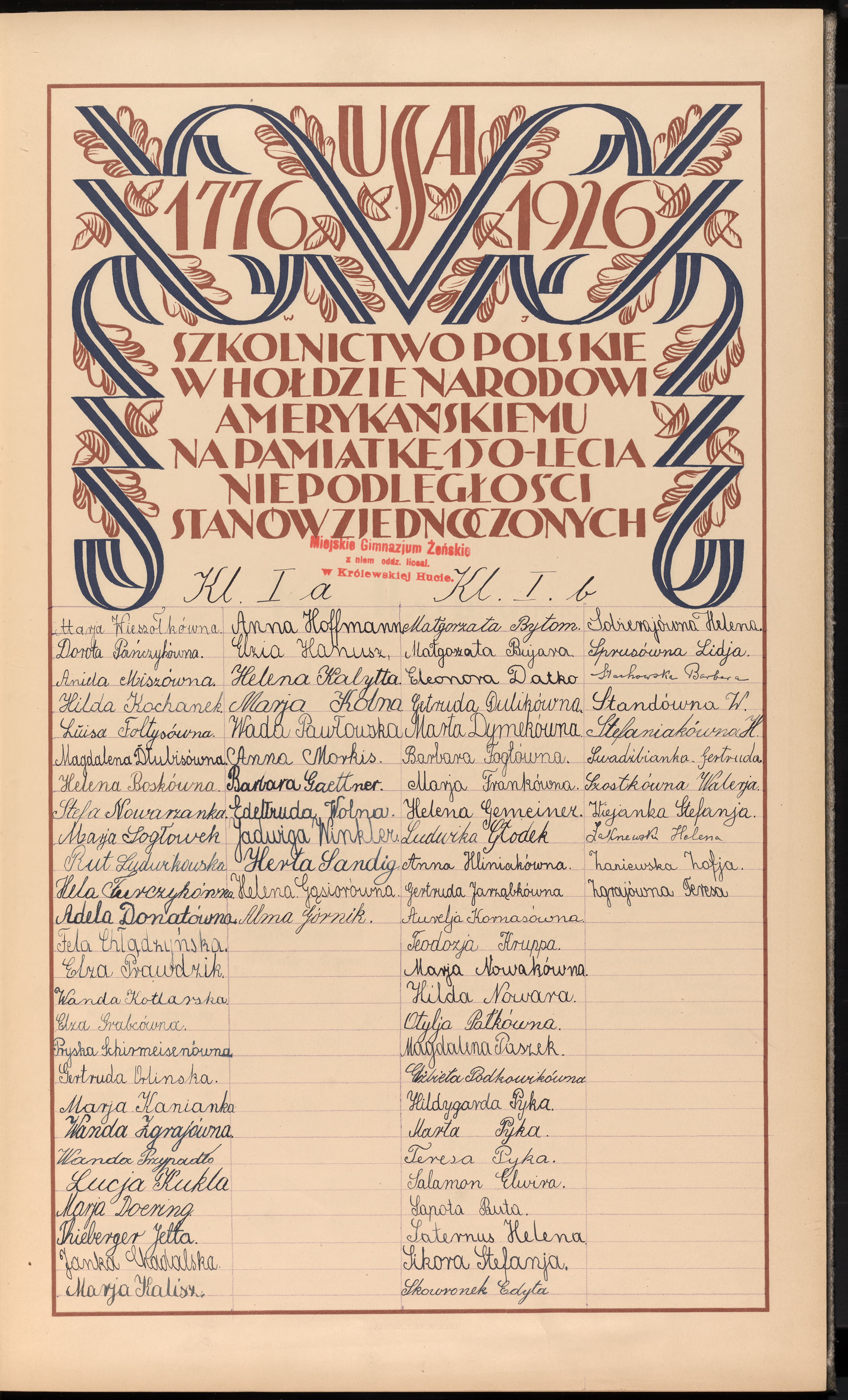 Miejskie Gimnazjum Żeńskie z niem. oddz. liceal. W Królewskiej Hucie