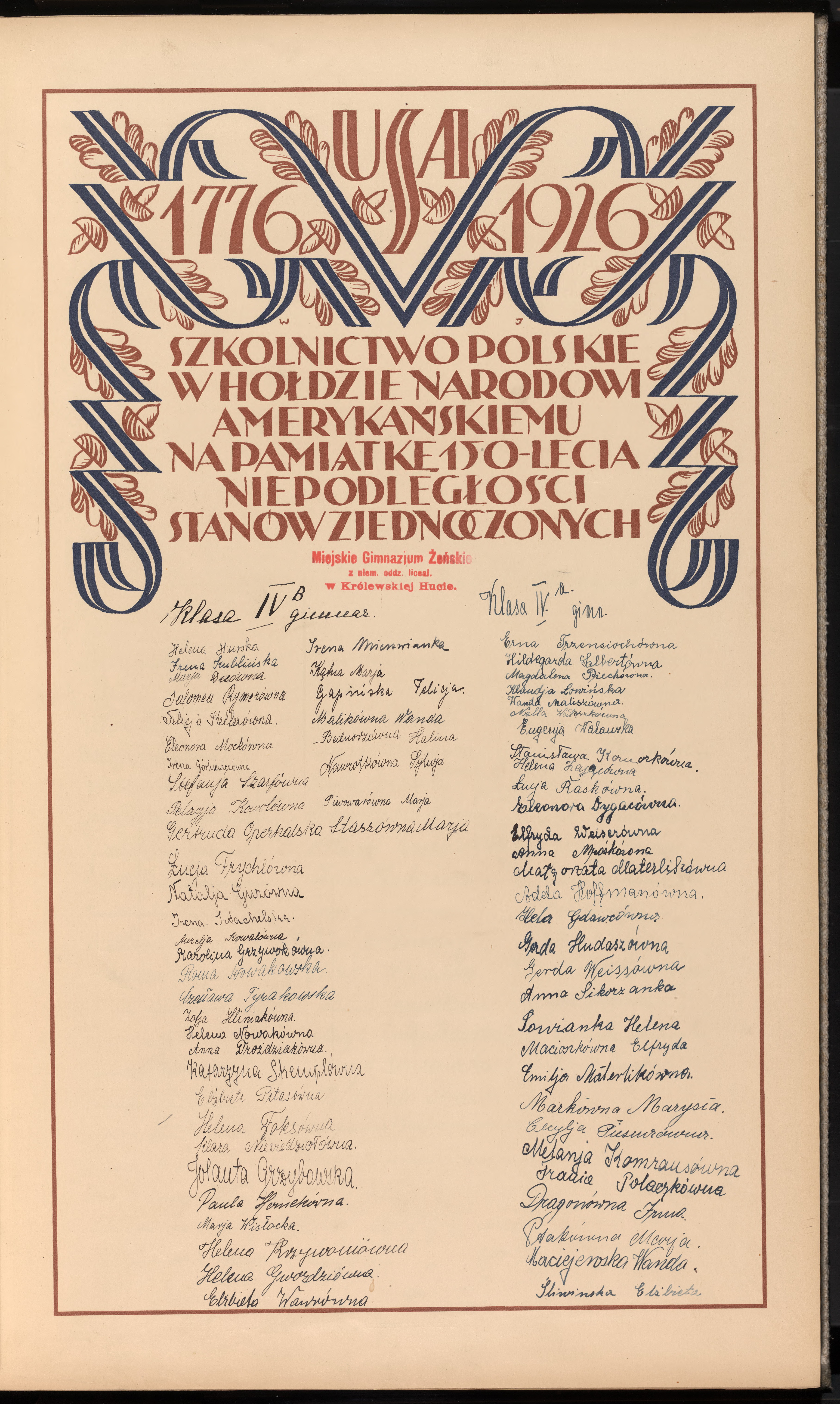 Miejskie Gimnazjum Żeńskie z niem. oddz. liceal. W Królewskiej Hucie