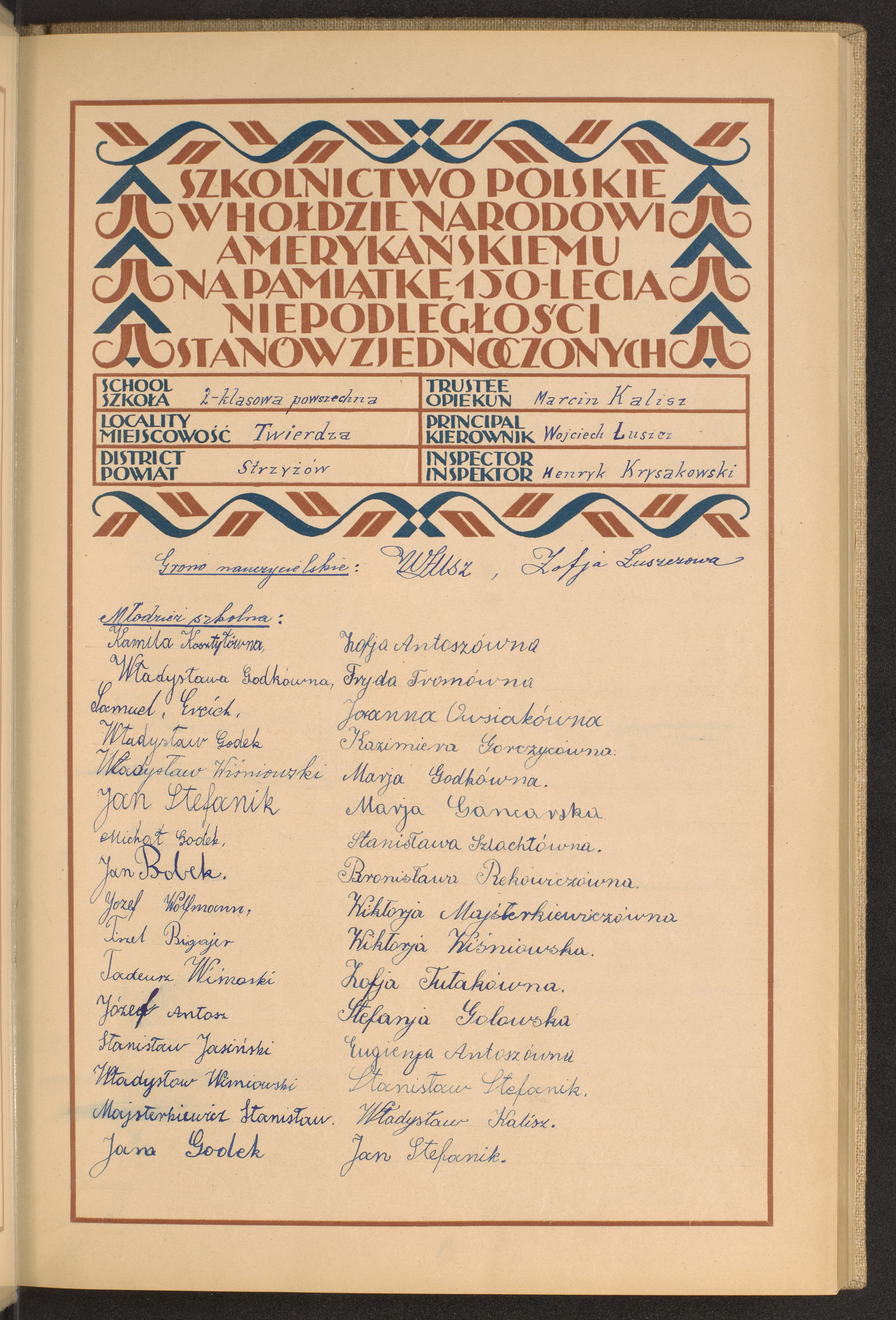 szkoły powszechne i gimnazja; powiaty Strzyżów-Szubin