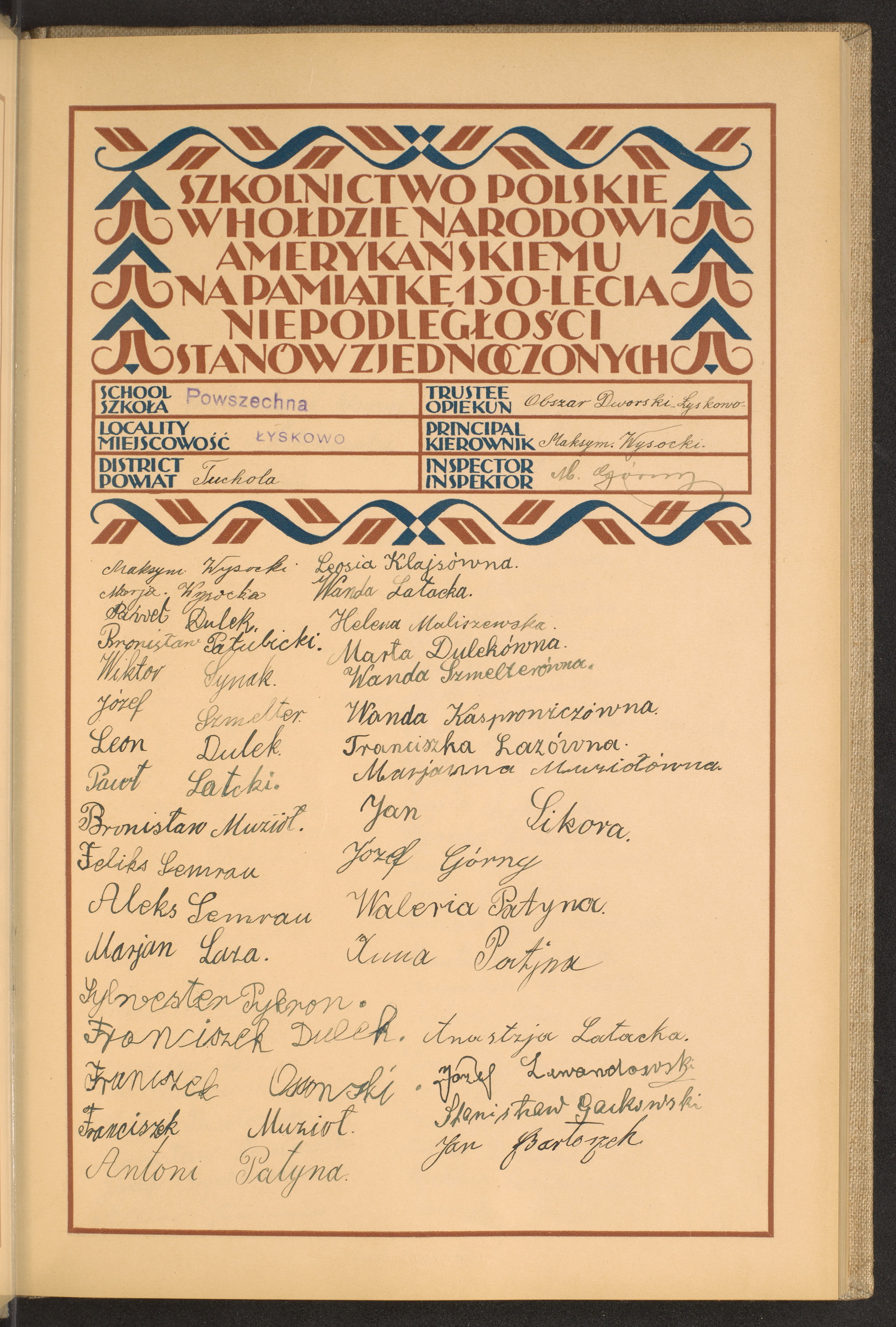 szkoły powszechne i gimnazja; powiaty Tuchola-Warszawa