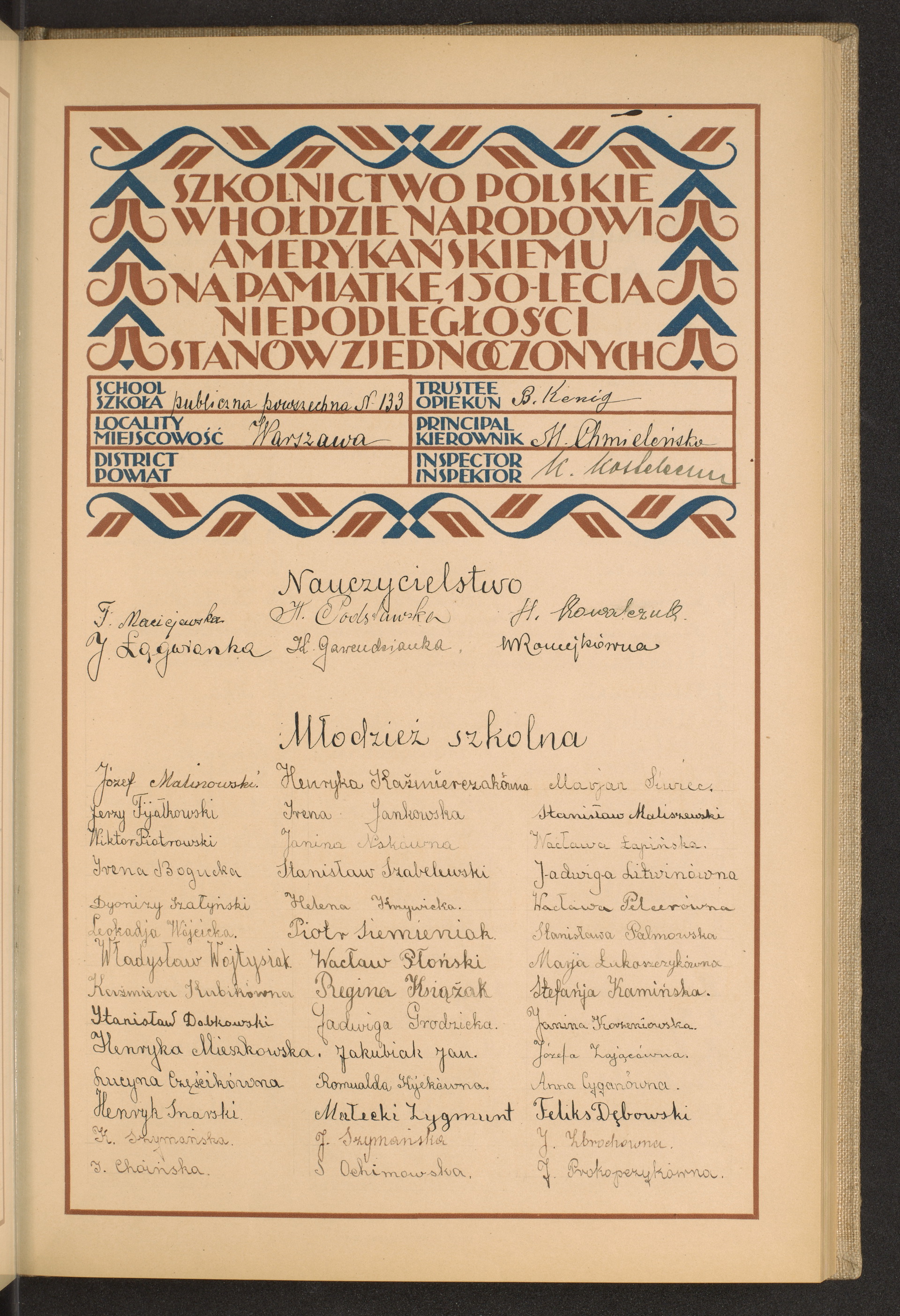 szkoły powszechne i gimnazja; powiaty Warszawa-Wąbrzeźno
