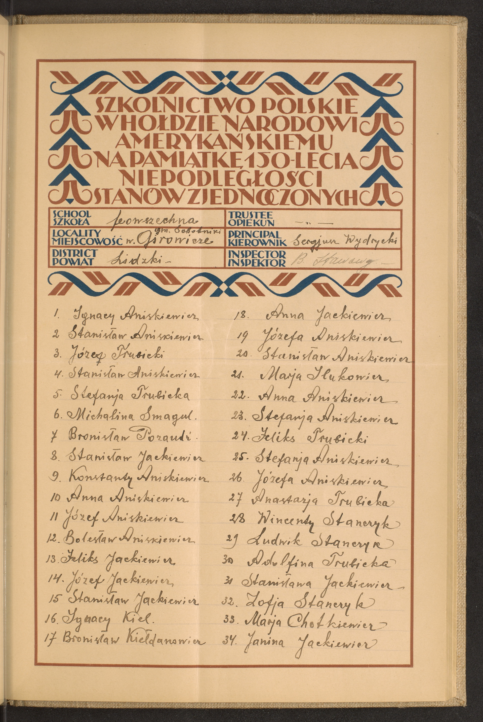 szkoły powszechne i gimnazja; powiaty Wołożyn-Wyrzysk