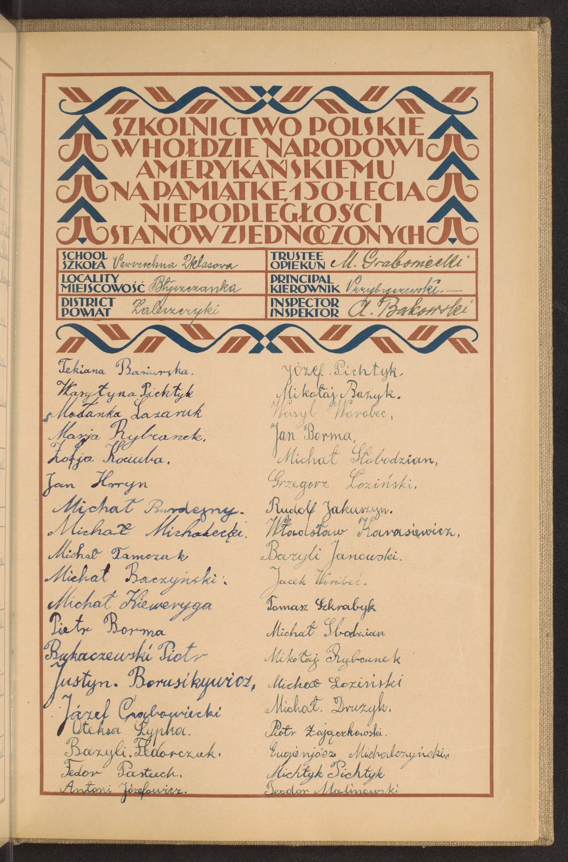 szkoły powszechne i gimnazja; powiaty Wyrzysk-Zaleszczyki
