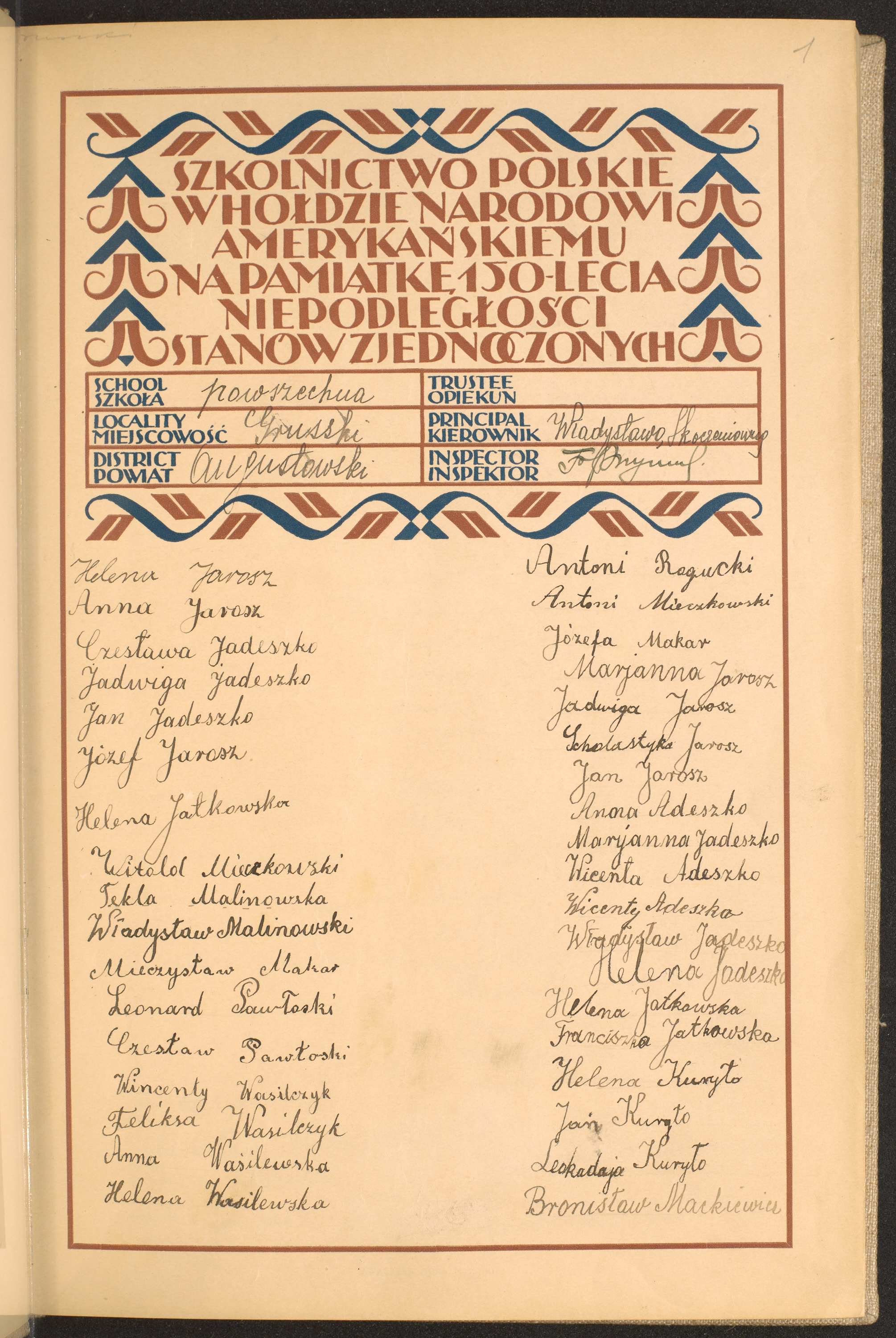 szkoły powszechne i gimnazja; powiaty Augustów - Będzin