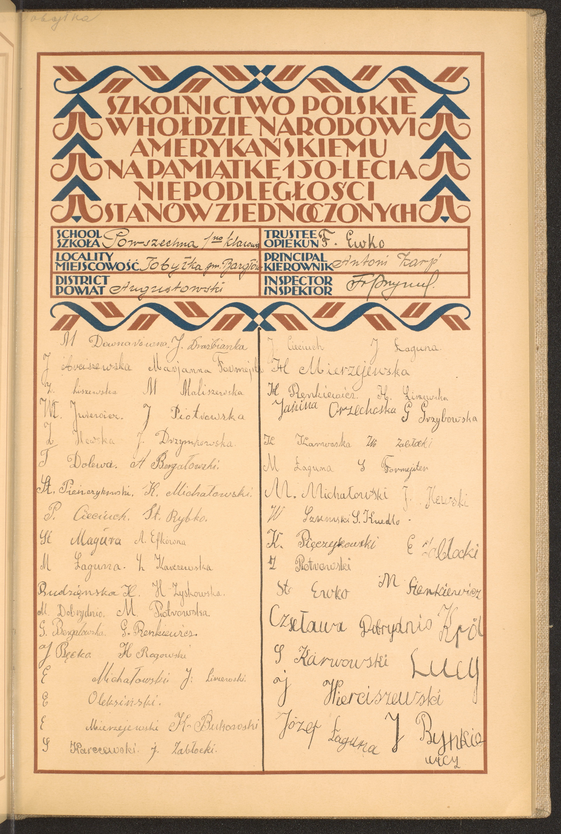 szkoły powszechne i gimnazja; powiaty Augustów - Będzin