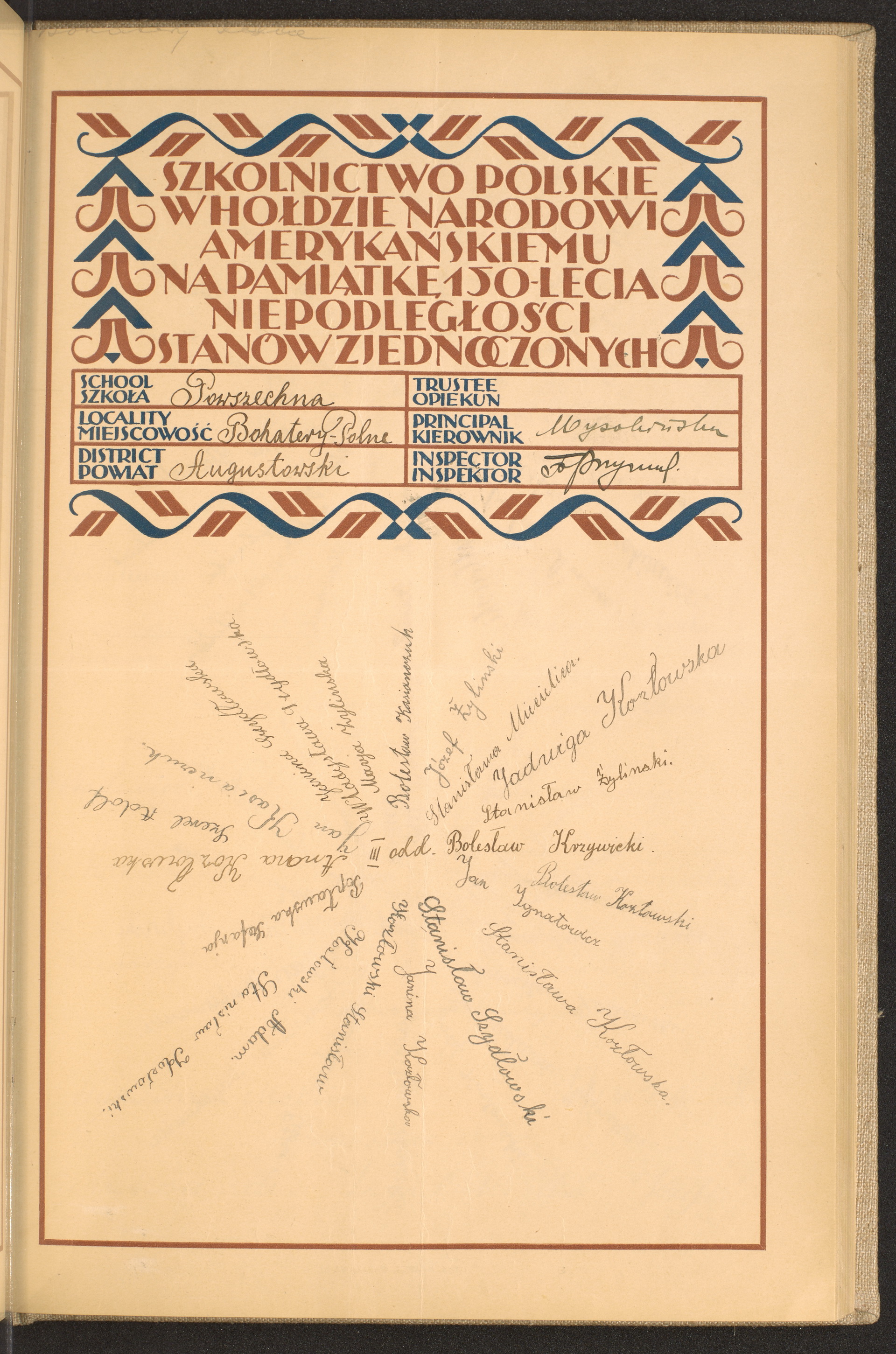 szkoły powszechne i gimnazja; powiaty Augustów - Będzin