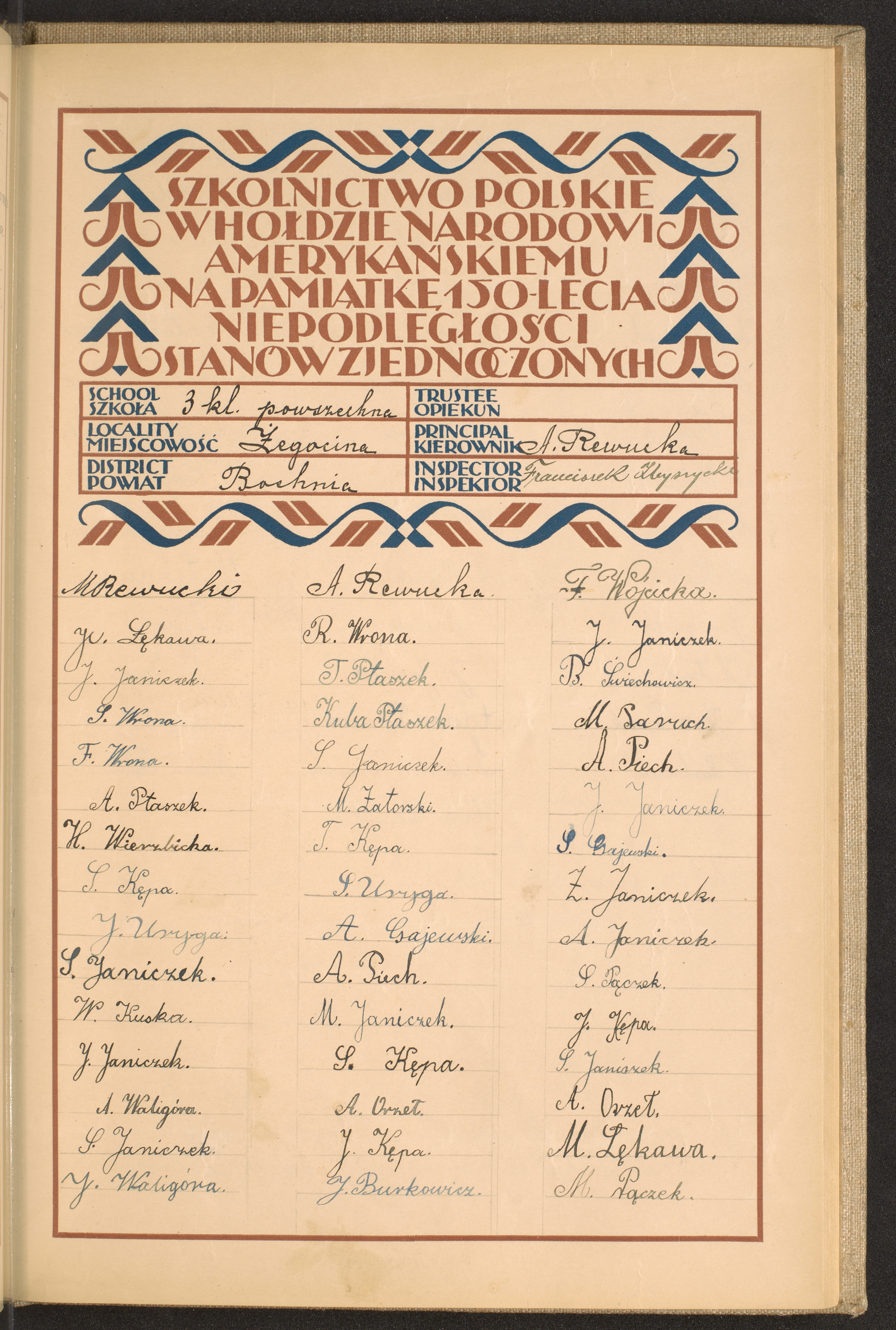 szkoły powszechne i gimnazja; powiaty Błonie - Bochnia