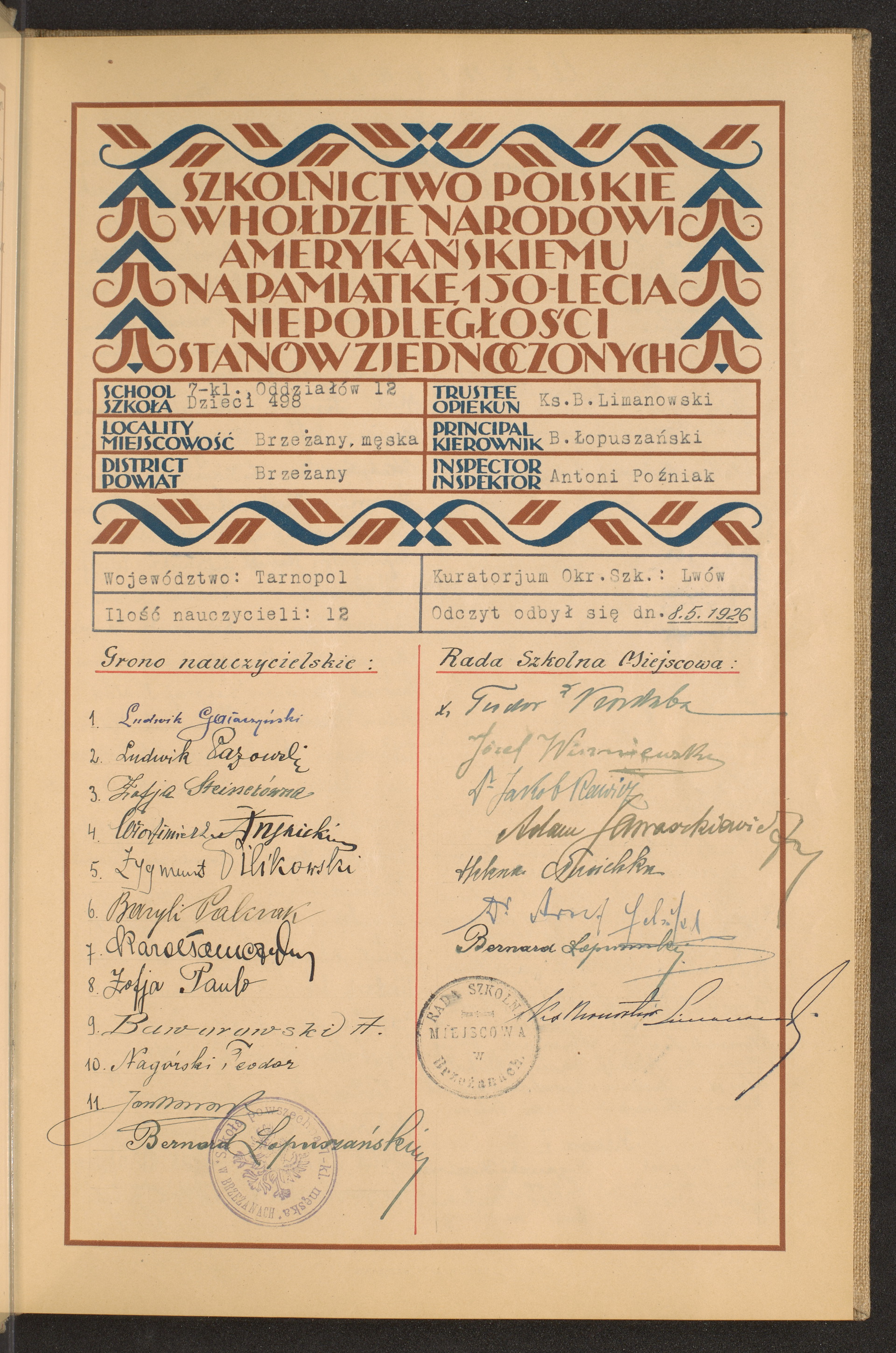 szkoły powszechne i gimnazja; powiaty Brzeżany - Ciechanów