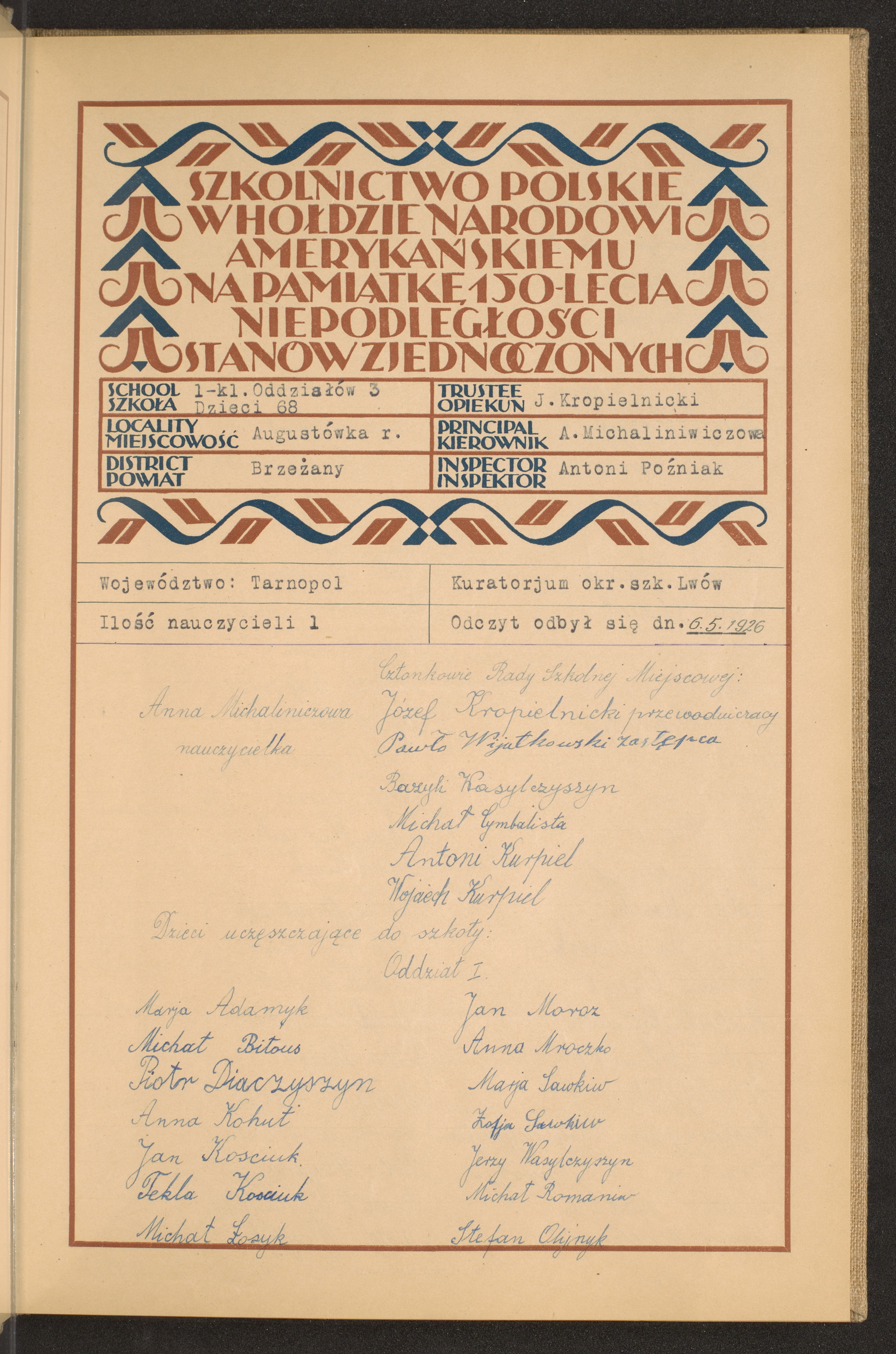 szkoły powszechne i gimnazja; powiaty Brzeżany - Ciechanów