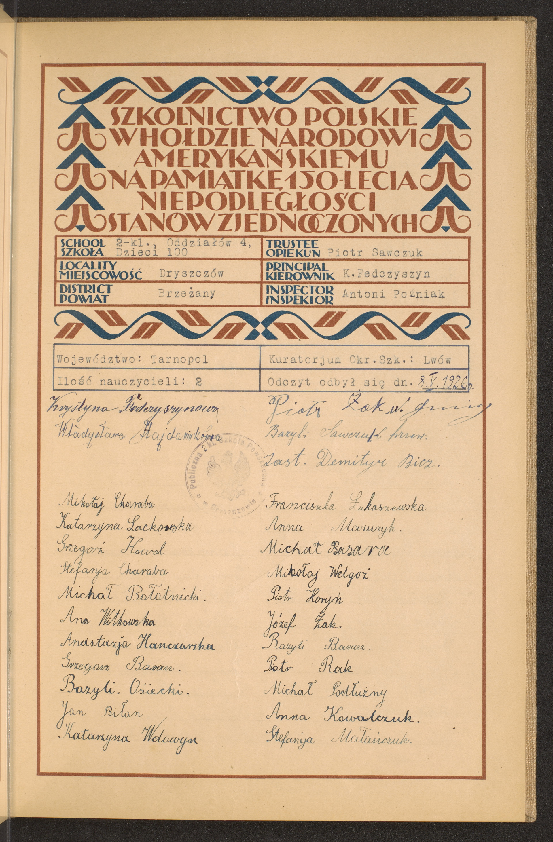 szkoły powszechne i gimnazja; powiaty Brzeżany - Ciechanów