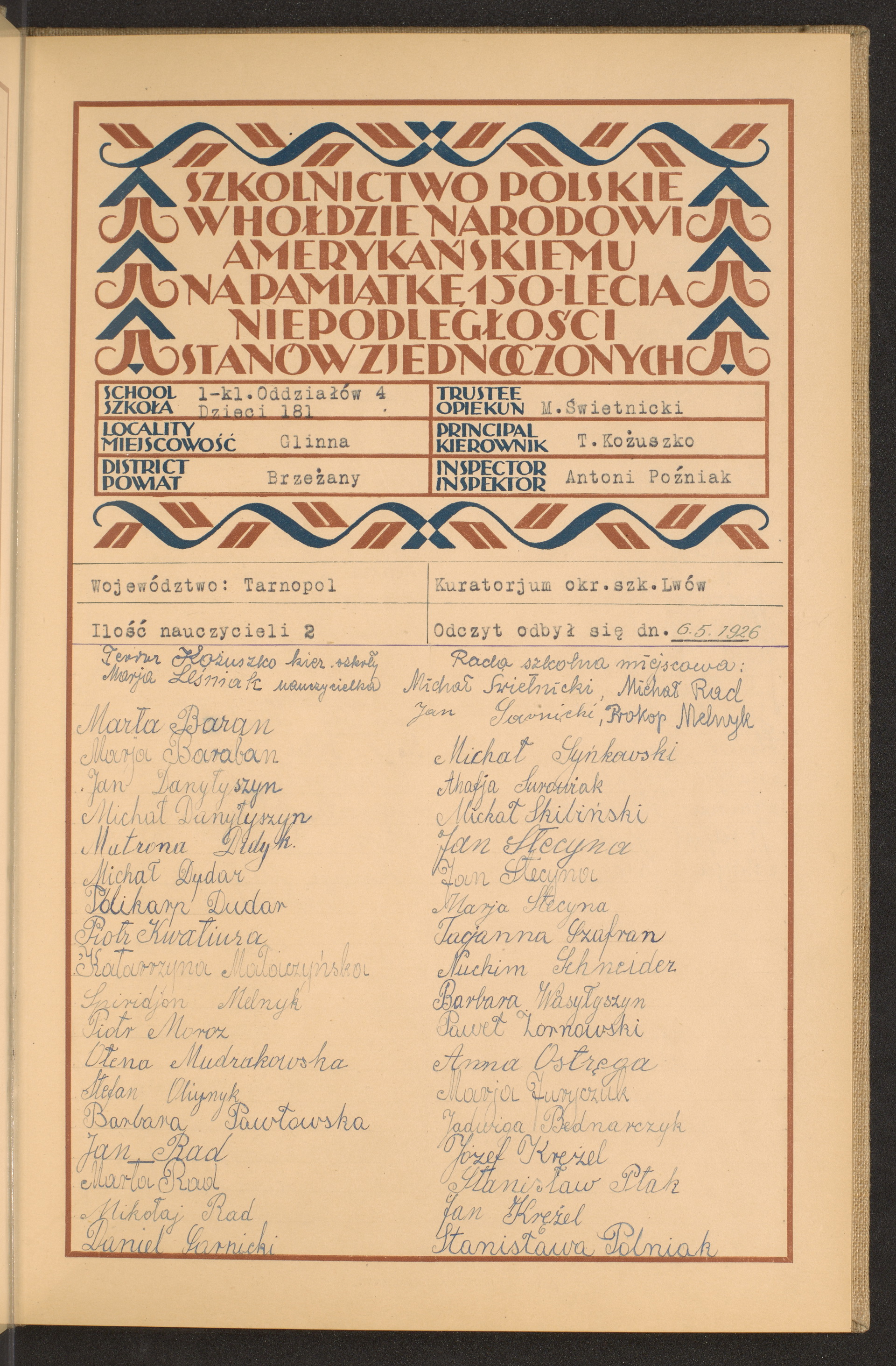 szkoły powszechne i gimnazja; powiaty Brzeżany - Ciechanów