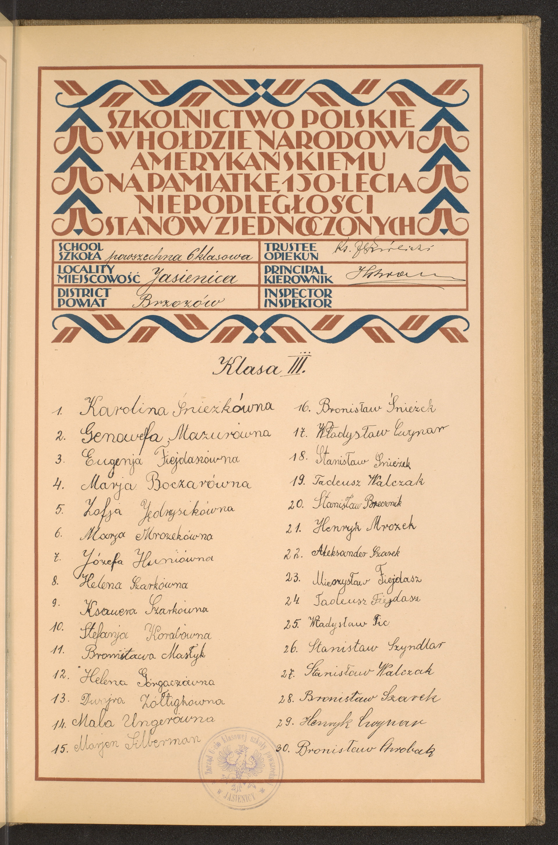 szkoły powszechne i gimnazja; powiaty Brzeżany - Ciechanów