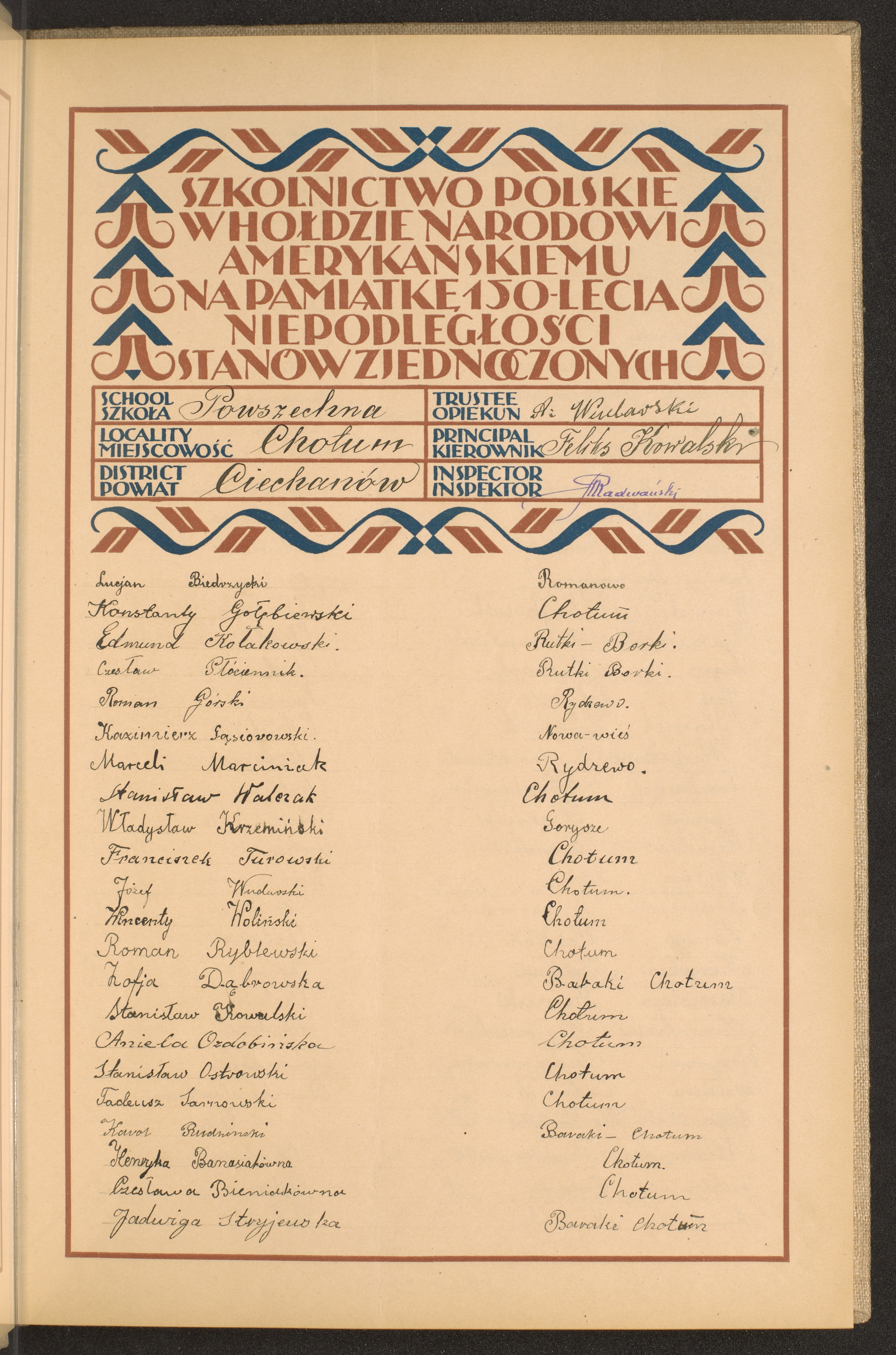 szkoły powszechne i gimnazja; powiaty Ciechanów - Częstochowa