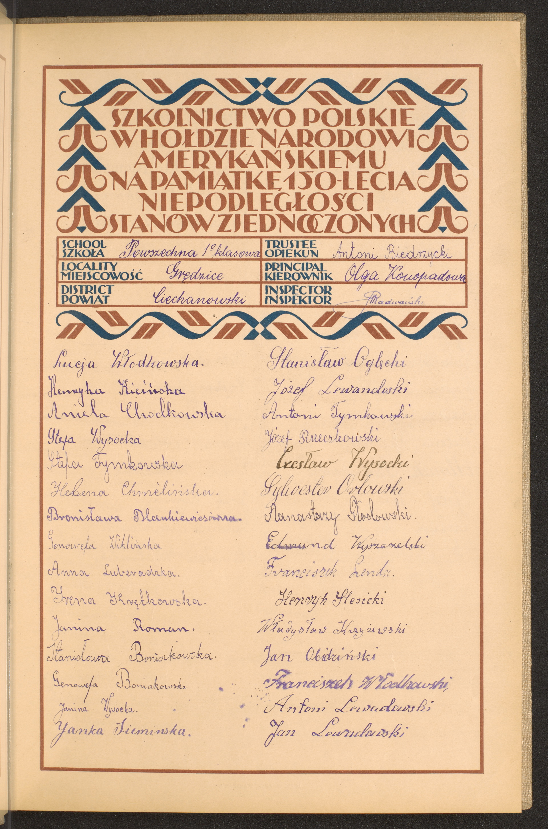 szkoły powszechne i gimnazja; powiaty Ciechanów - Częstochowa