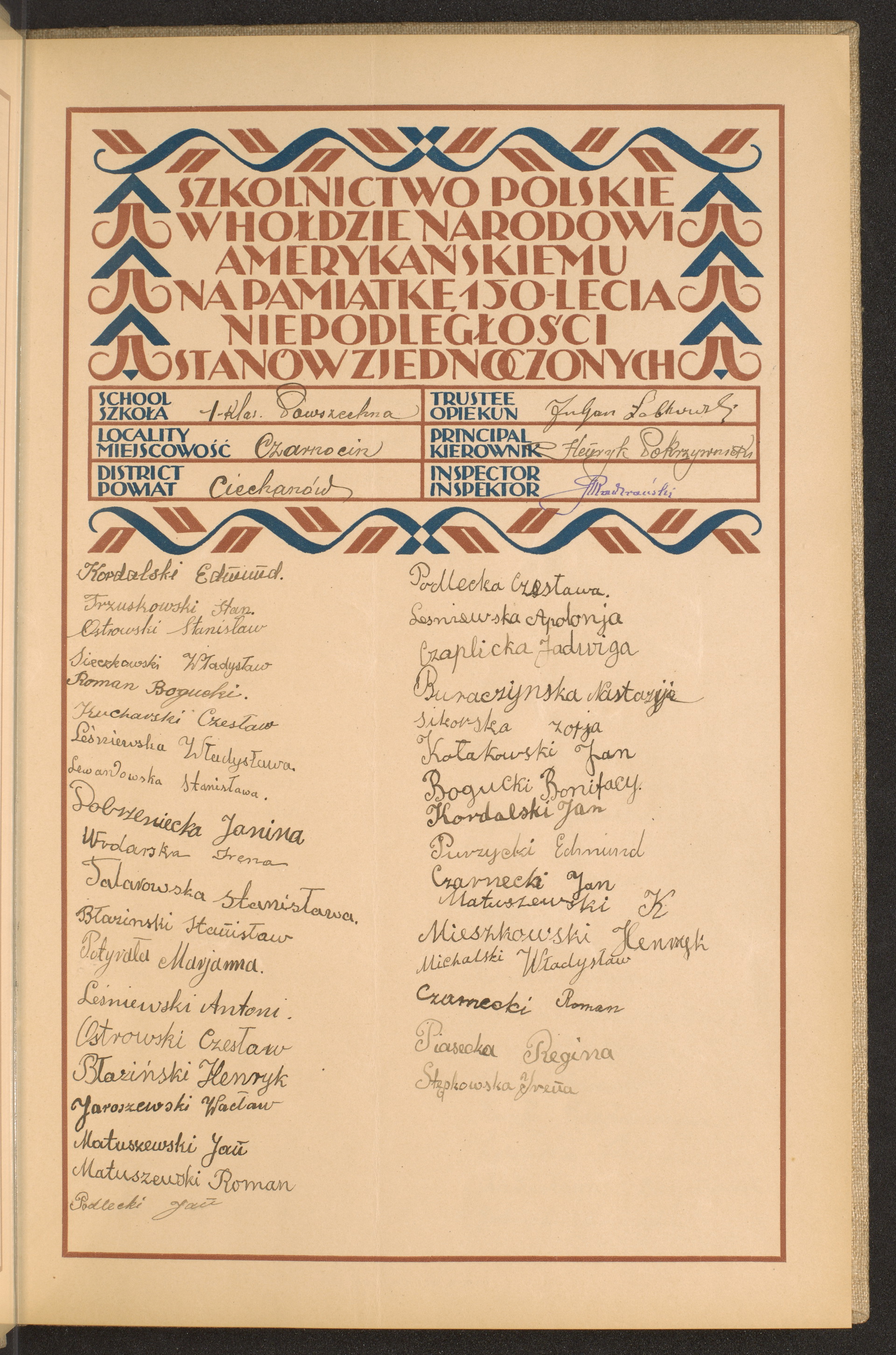szkoły powszechne i gimnazja; powiaty Ciechanów - Częstochowa