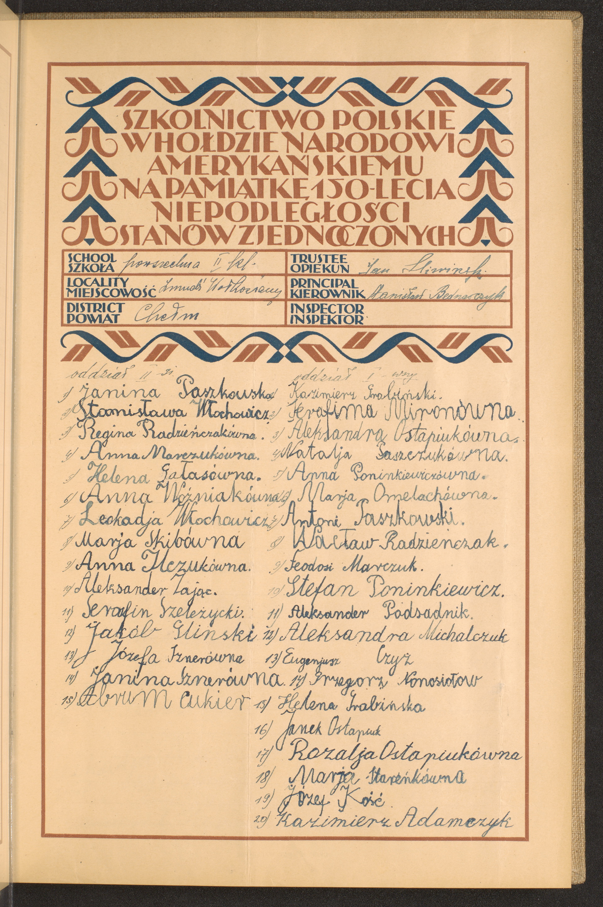 szkoły powszechne i gimnazja; powiaty Chełm-Chojnice