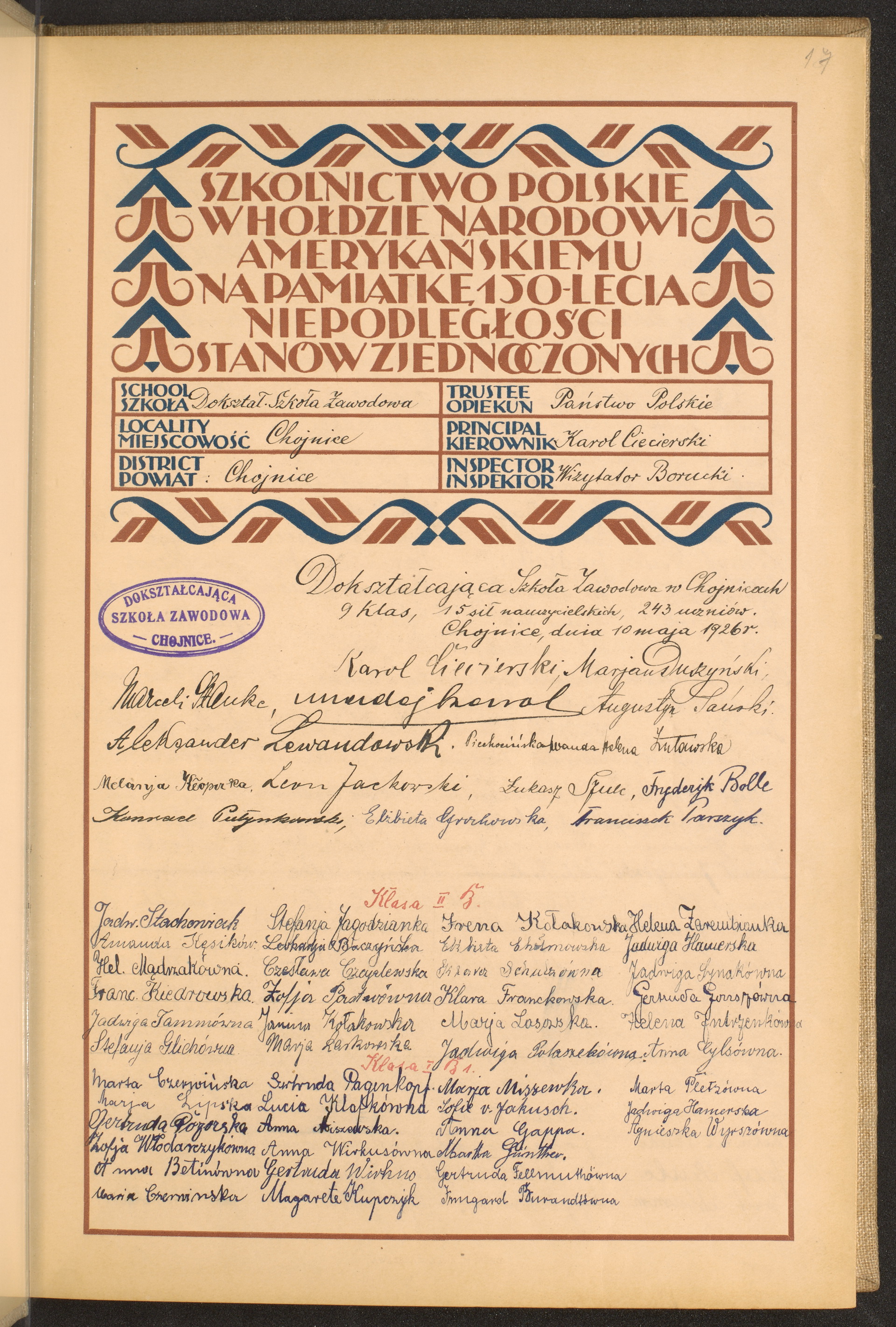 szkoły powszechne i gimnazja; powiaty Chojnice-Chrzanów