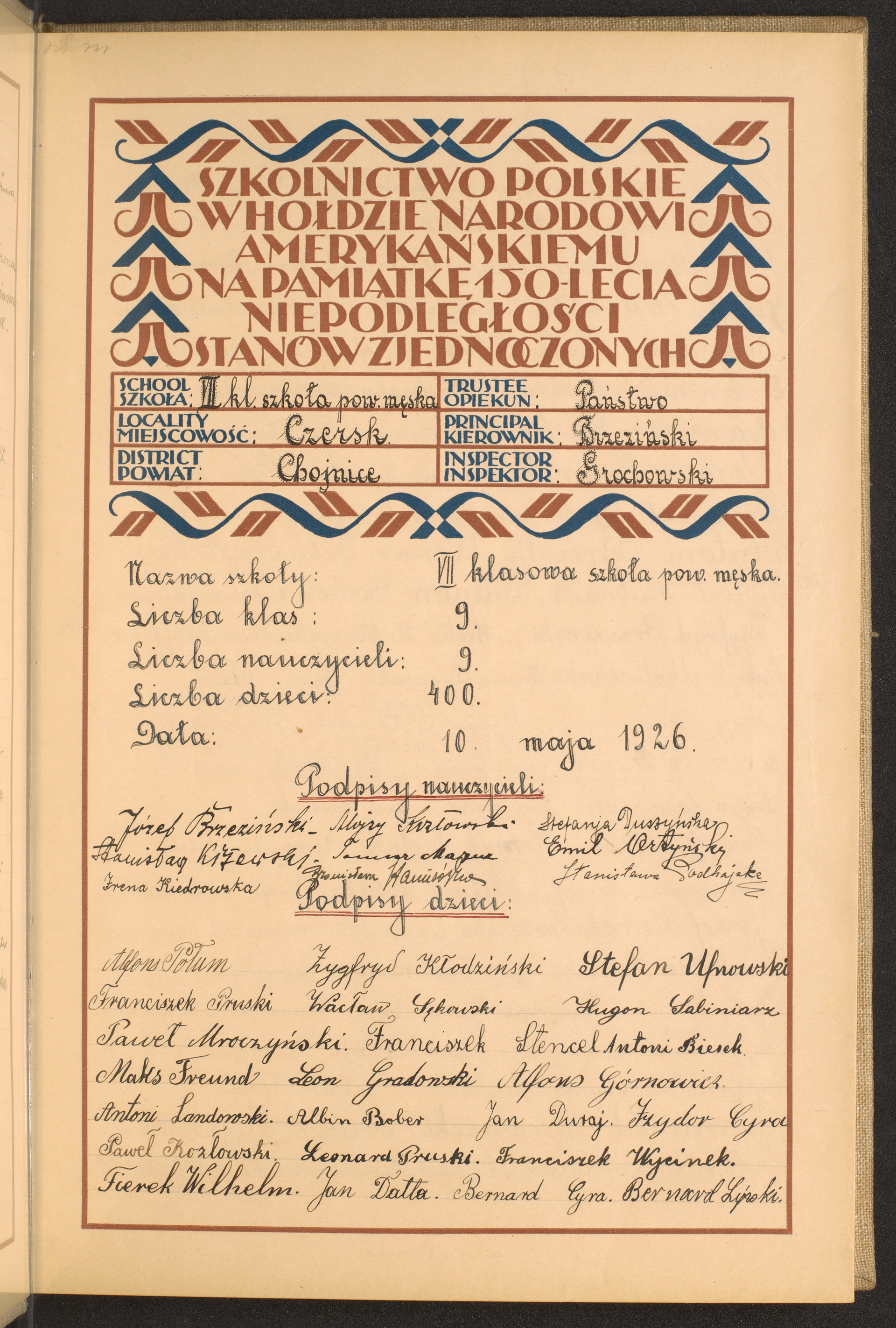 szkoły powszechne i gimnazja; powiaty Chojnice-Chrzanów
