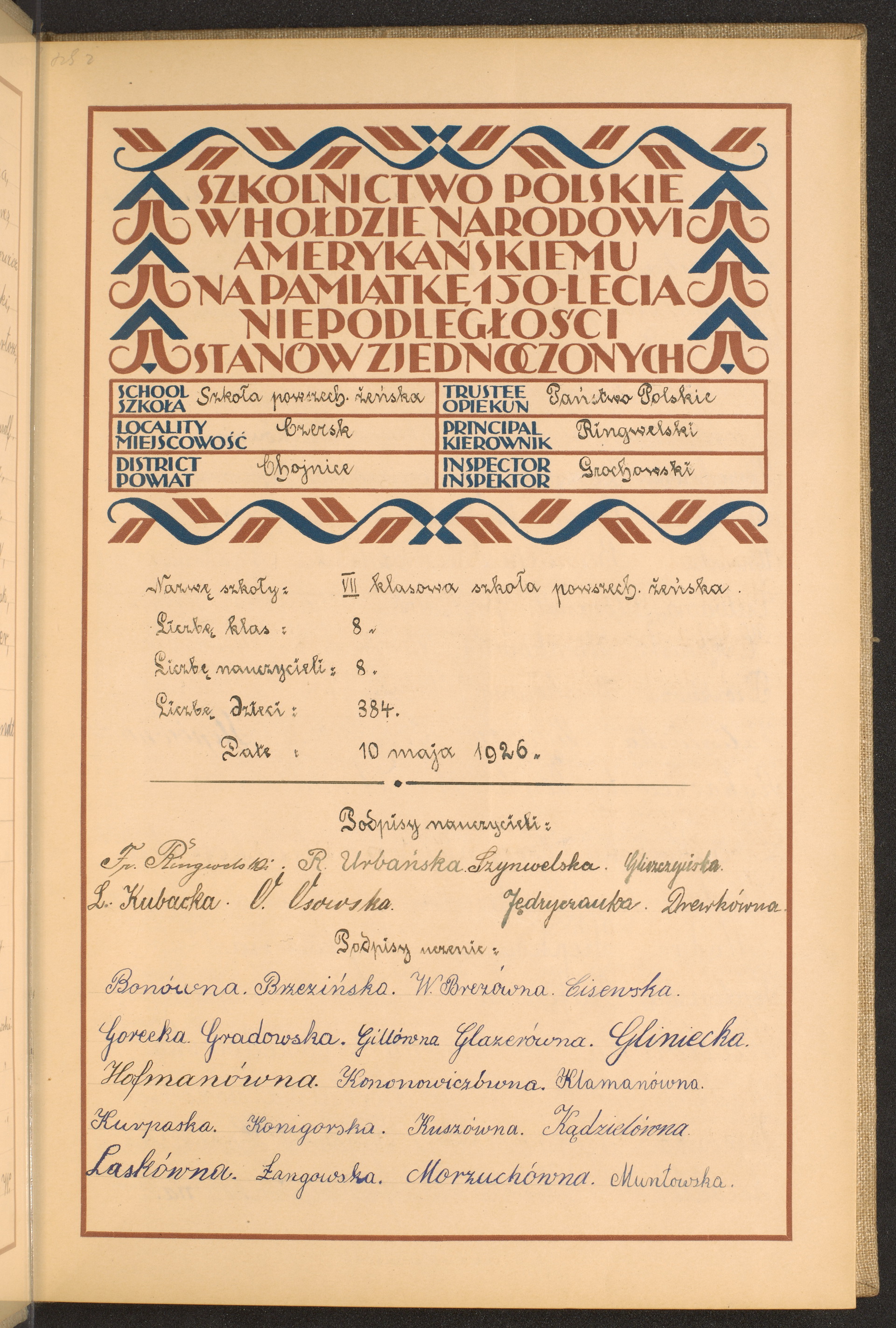 szkoły powszechne i gimnazja; powiaty Chojnice-Chrzanów
