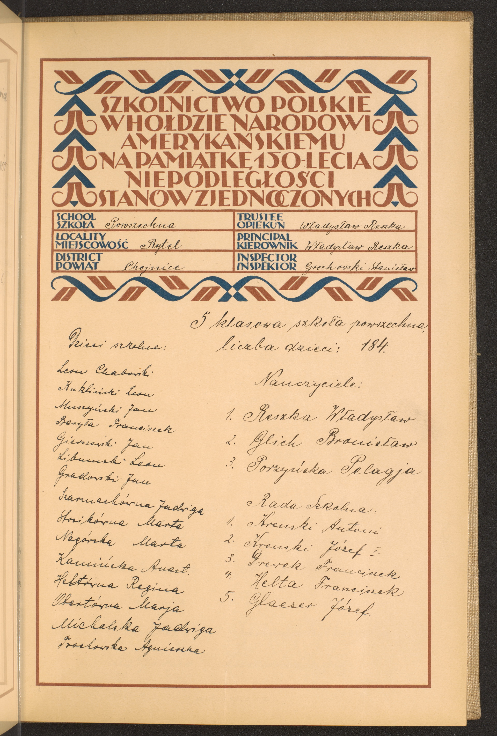 szkoły powszechne i gimnazja; powiaty Chojnice-Chrzanów