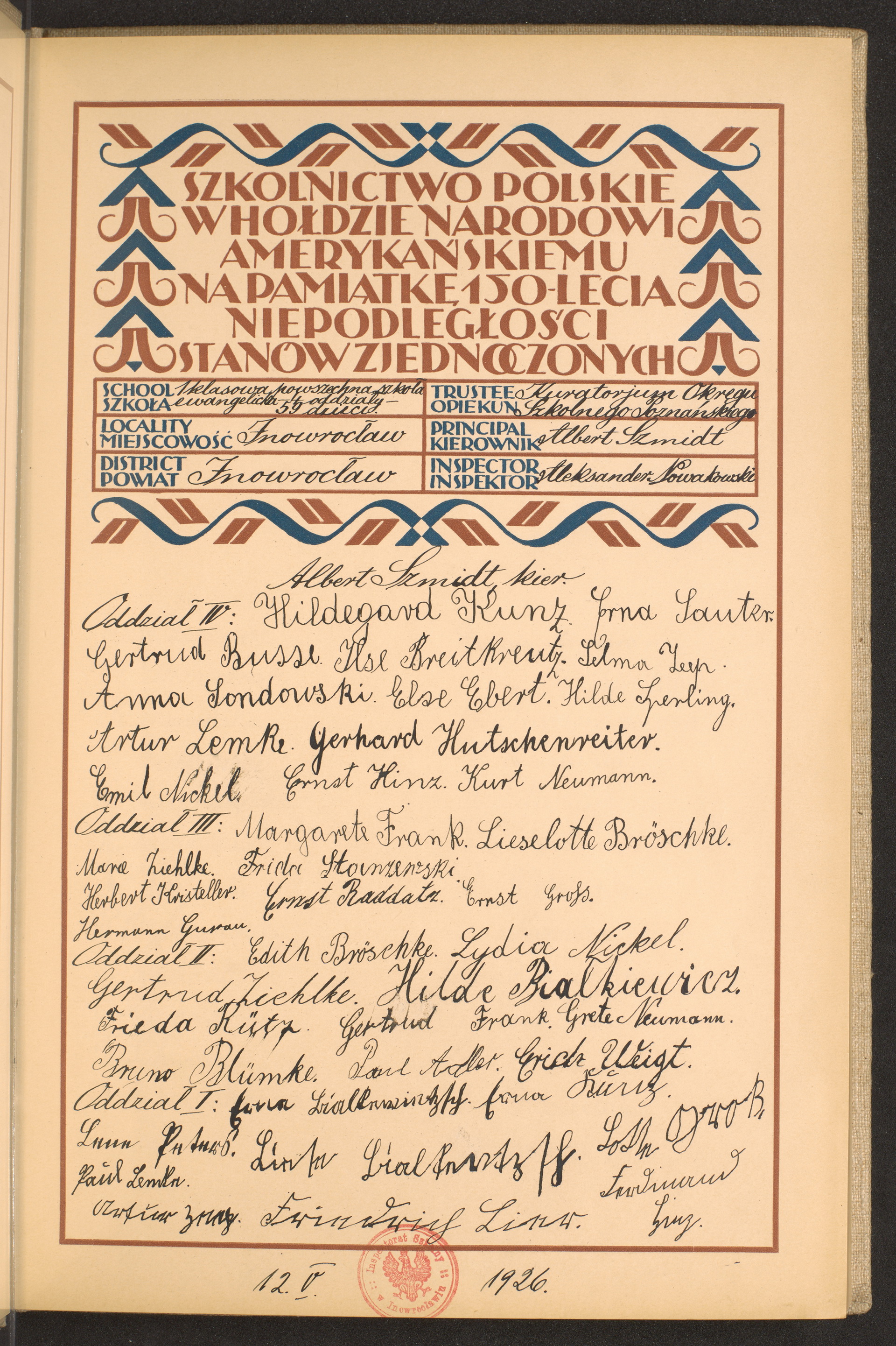 szkoły powszechne i gimnazja; powiaty Inowrocław - Jarocin
