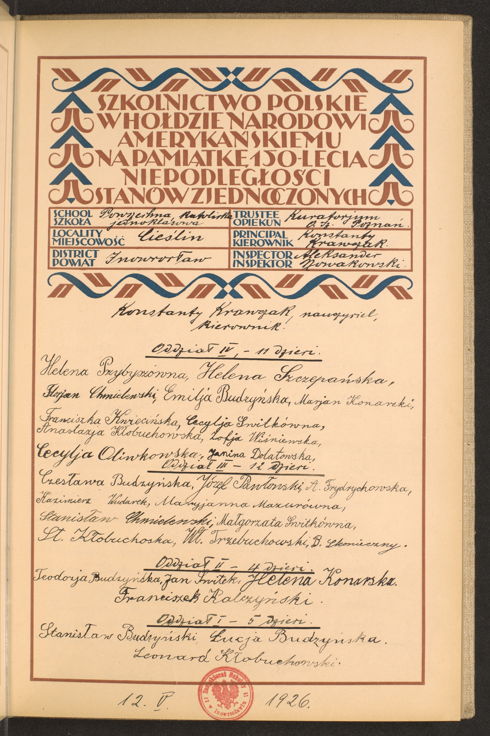 szkoły powszechne i gimnazja; powiaty Inowrocław - Jarocin