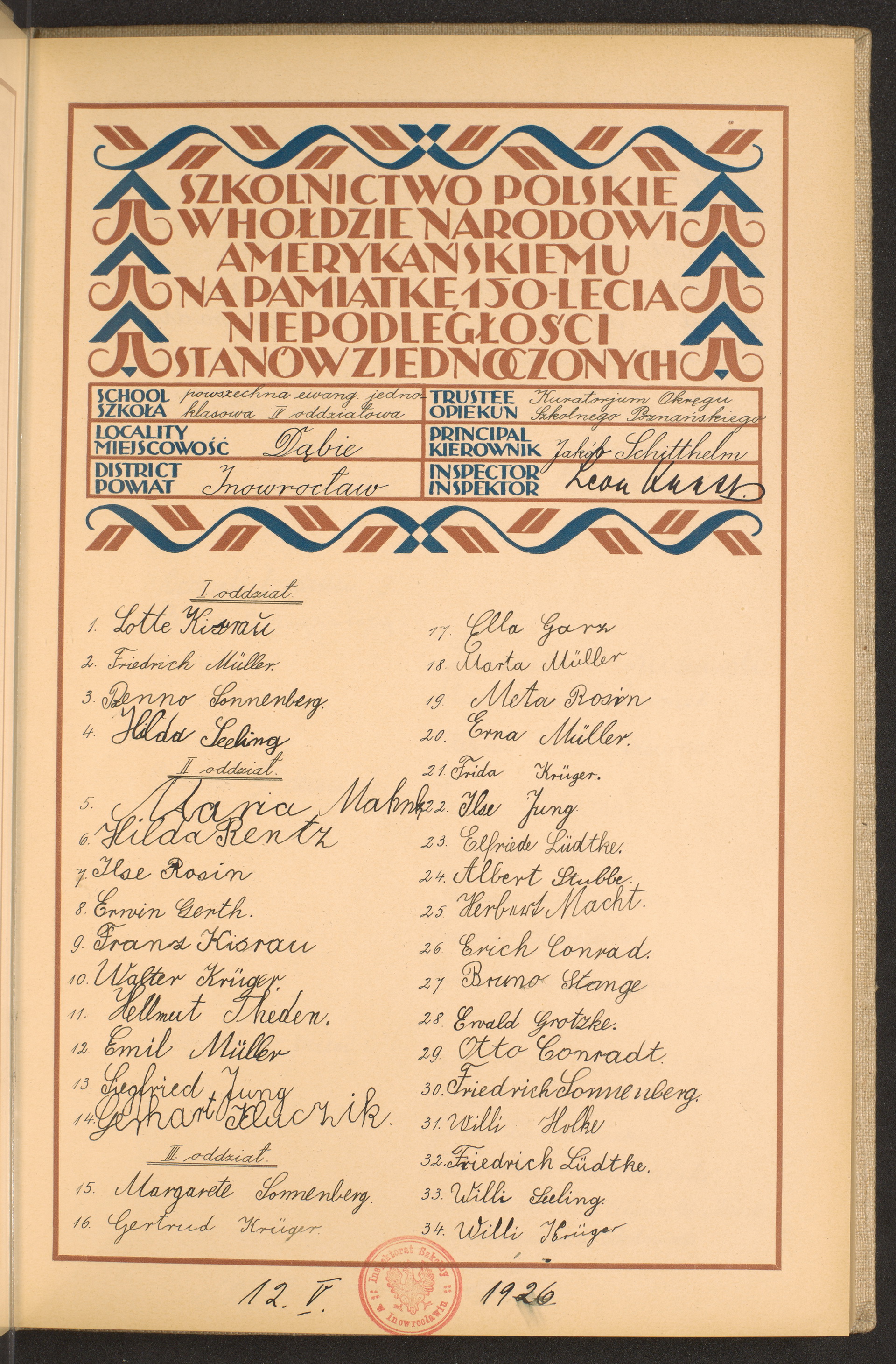 szkoły powszechne i gimnazja; powiaty Inowrocław - Jarocin
