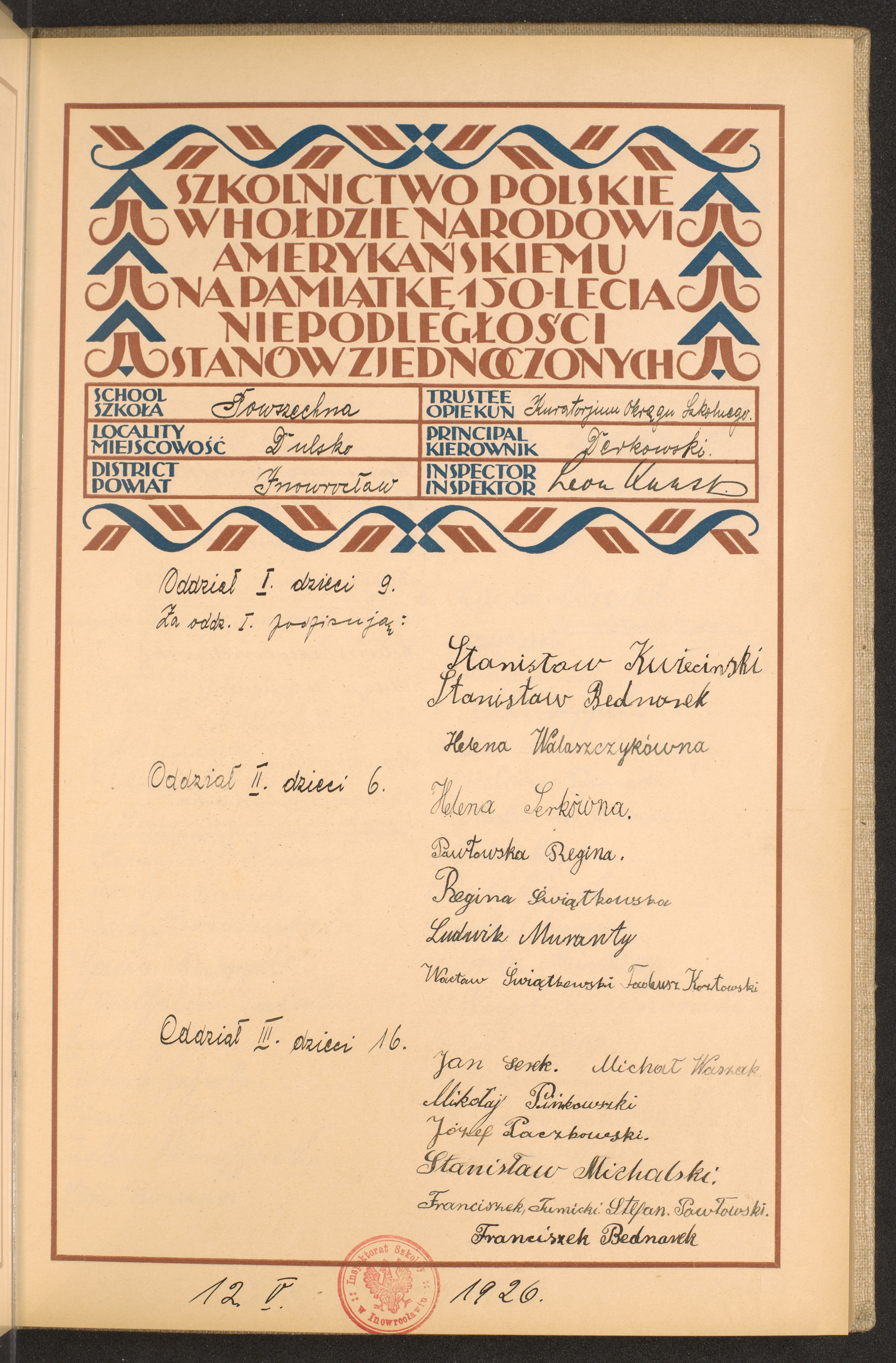 szkoły powszechne i gimnazja; powiaty Inowrocław - Jarocin