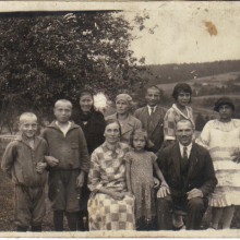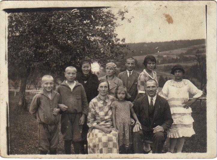 Stoją od lewej: Henryk Baniak, Antoni Baniak, starsza siostra babci Magdaleny Petronela i jej córka, Aleksander Baniak, Zofia Baniak i Jadwiga Baniak.