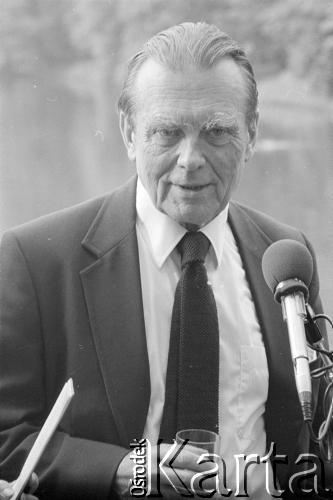 Fotografia: Tomasz Tomaszewski, zbiory Ośrodka KARTA. Sygnatura: OK_1110_0006_008, 6.06.1981, Warszawa, Polska. Wizyta Czesława Miłosza w Polsce po otrzymaniu Literackiej Nagrody Nobla. Czesław Miłosz podczas spotkania w Pałacu na Wodzie w Łazienkach Królewskich.