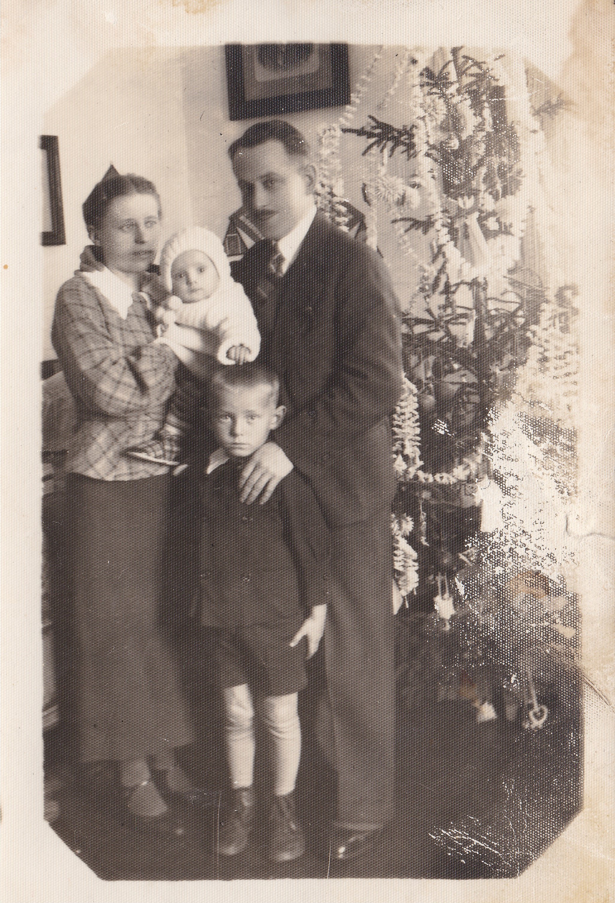 3. Barbara Grzebuła z mężem Janem Szocińskim wraz z synem Tadeuszem i córką Lusią na Boże narodzenie 1937 w Borzechowie