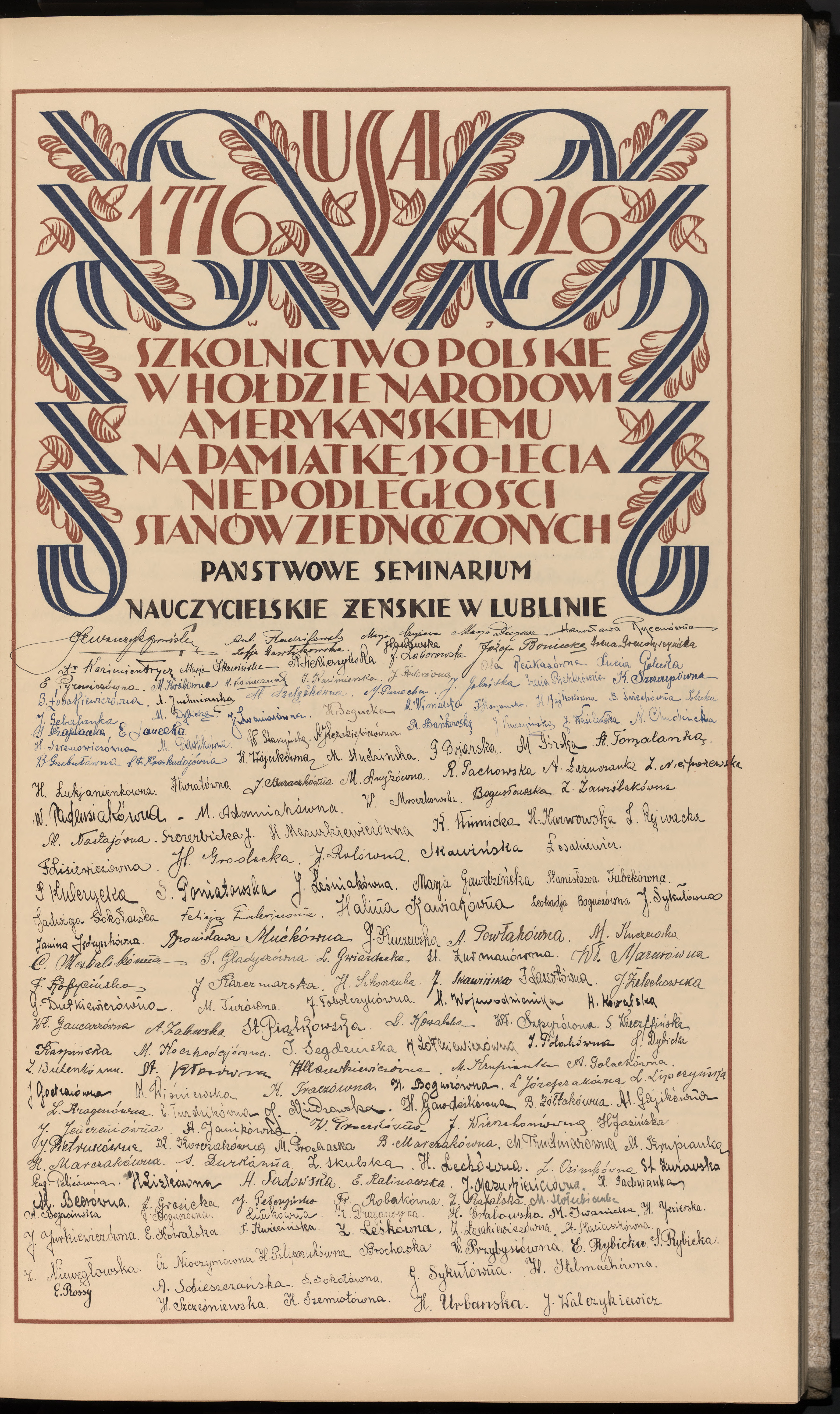 To właśnie w czasie, kiedy była uczennicą seminarium nauczycielskiego, podpisała w 1926 roku Deklarację Podziwu i Przyjaźni dla Stanów Zjednoczonych. Dlatego jest - jak do tej pory - jedyną osobą z naszej rodziny, która korespondowała z Prezydentem Stanów Zjednoczonych Ameryki Północnej i której autograf znajduje się w największej bibliotece świata – Bibliotece Kongresu Stanów Zjednoczonych w Waszyngtonie.