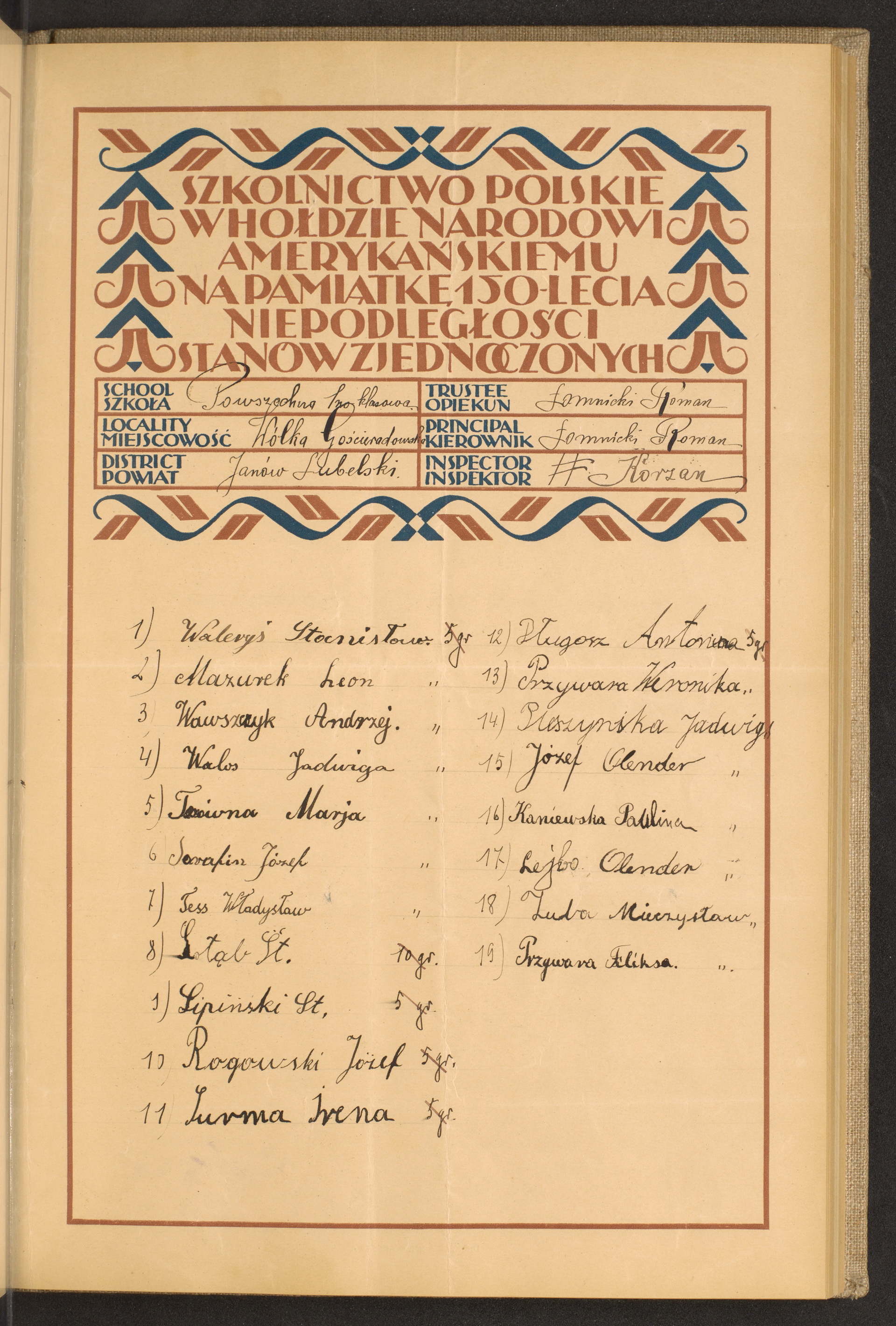 Jednoklasowa szkoła powszechna w Wólce Gościeradowskiej
