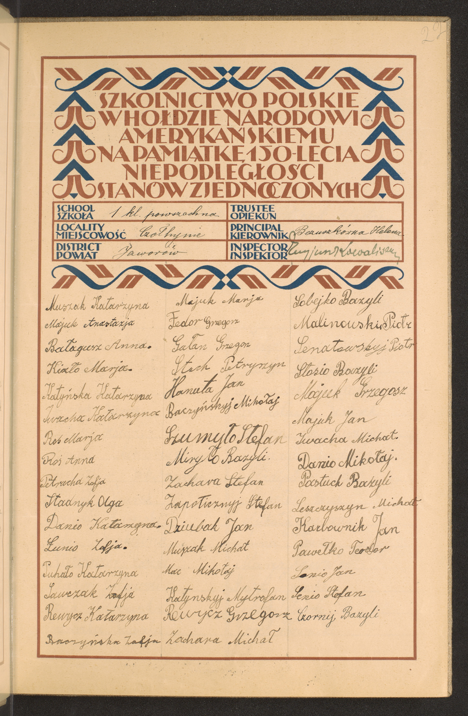 szkoły powszechne i gimnazja; powiaty Jaworów - Kamionka