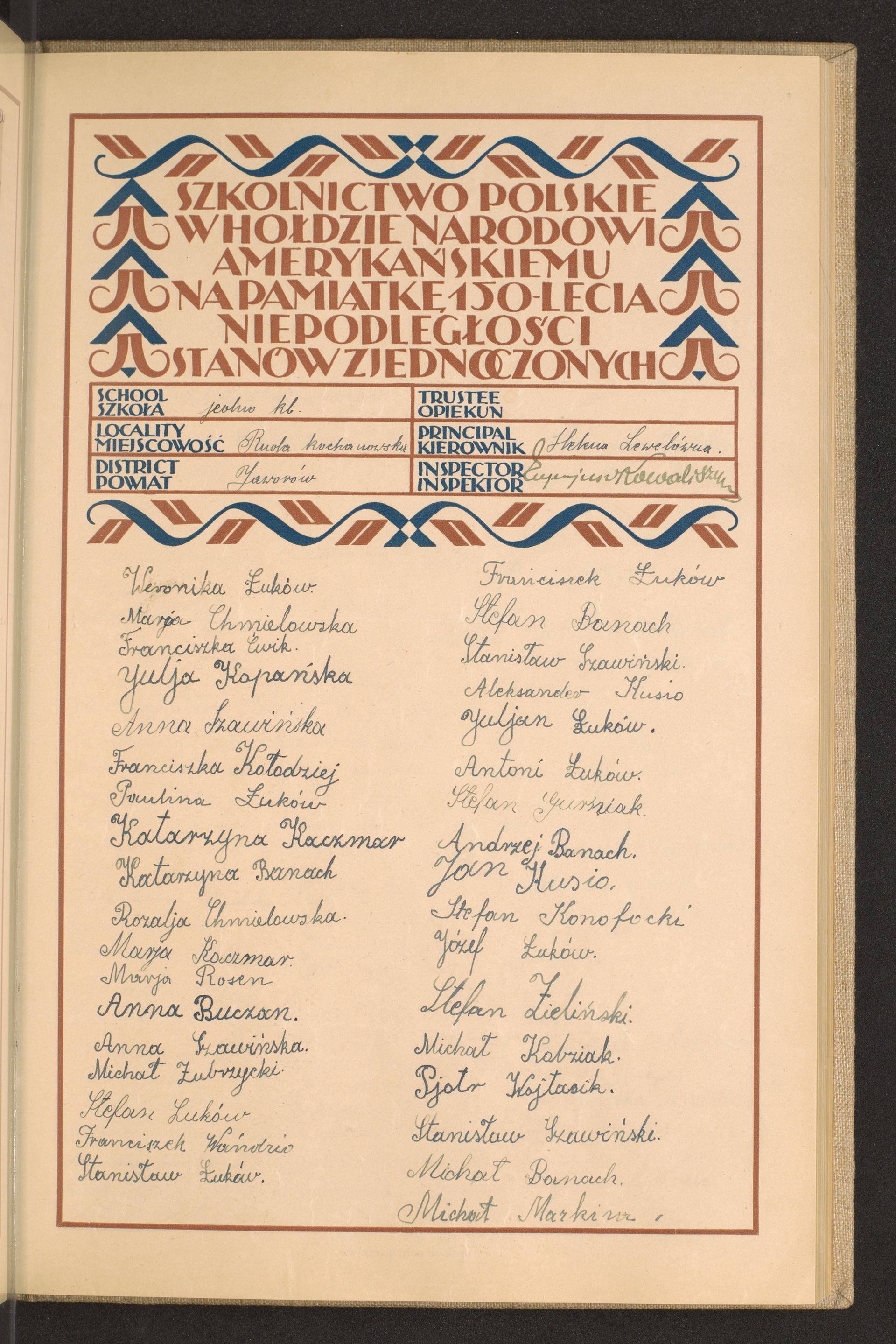 szkoły powszechne i gimnazja; powiaty Jaworów - Kamionka